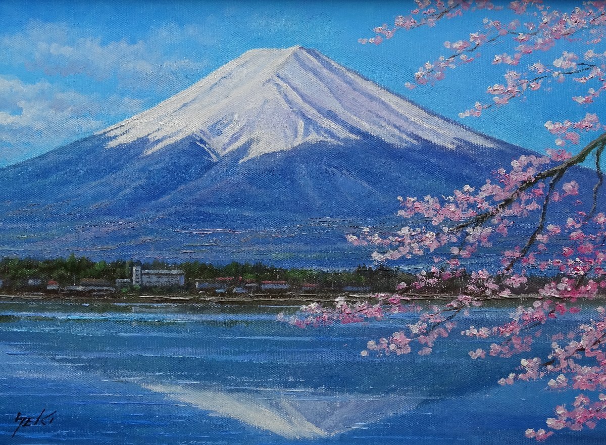 ・作者: 関 健造 ・画題: 富士に桜 ・技法: 油彩画(F6)・NO-R6-6-6-78.