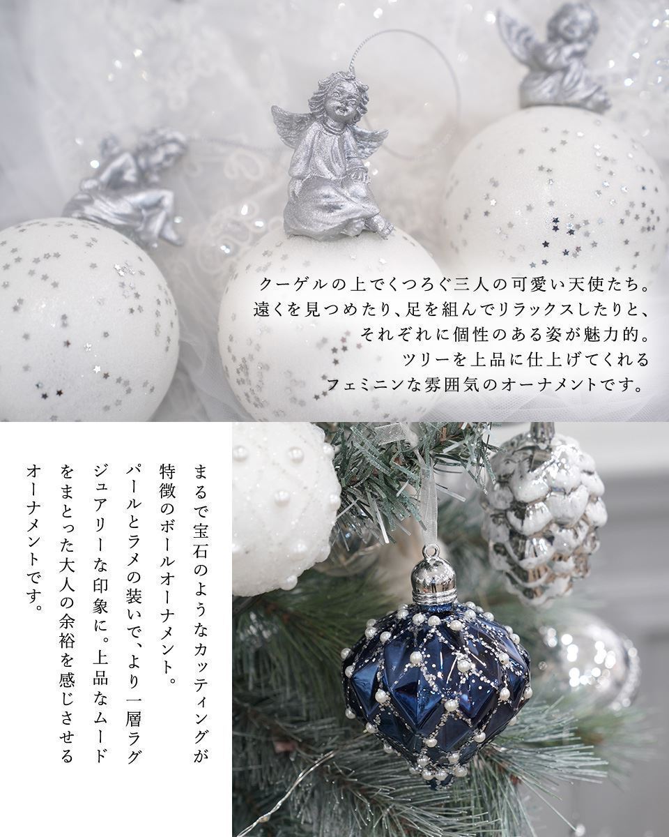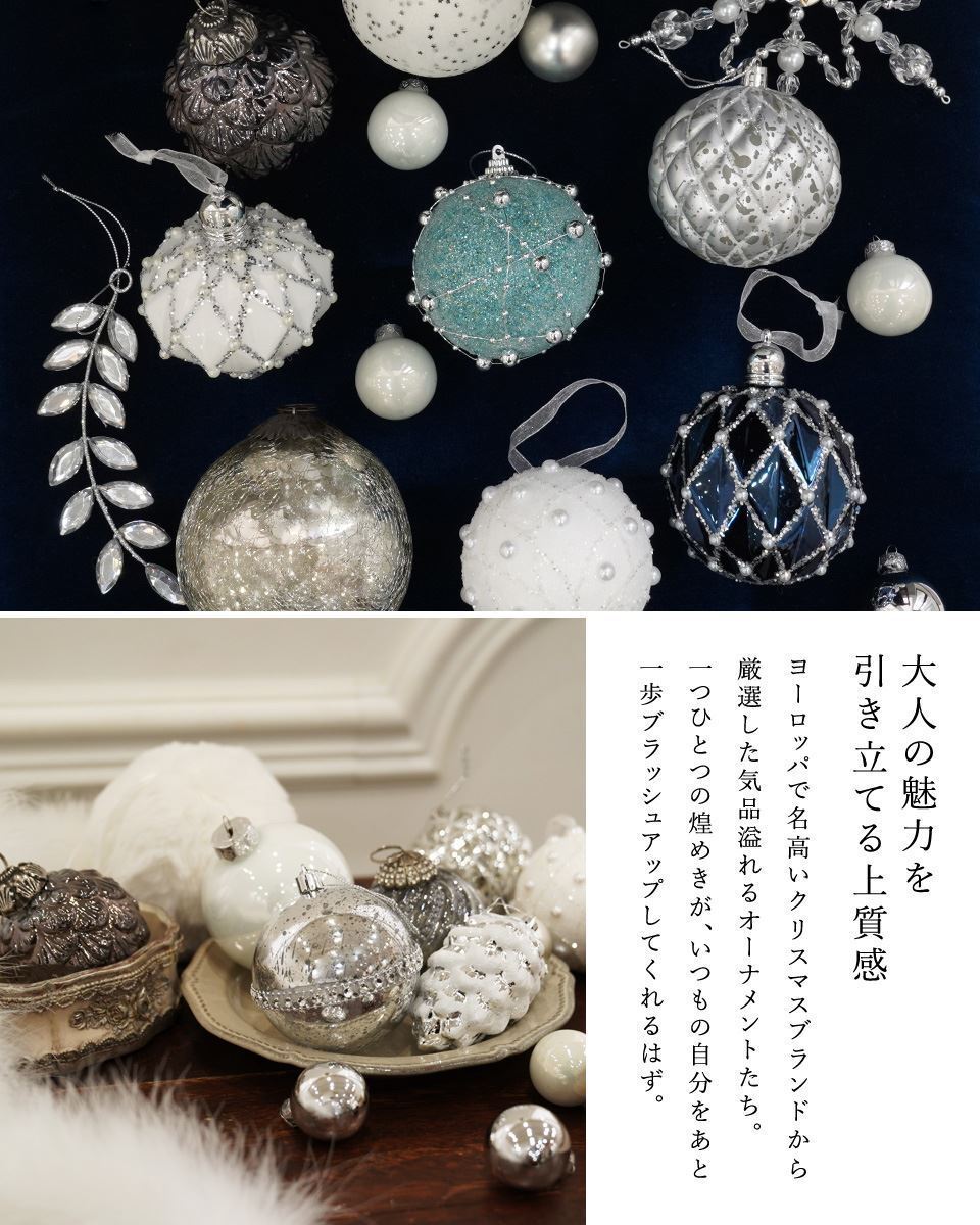 パールとラメの装いで、より一層ラグジュアリーな印象に。上品なムードをまとった大人の余裕を感じさせるオーナメントです。