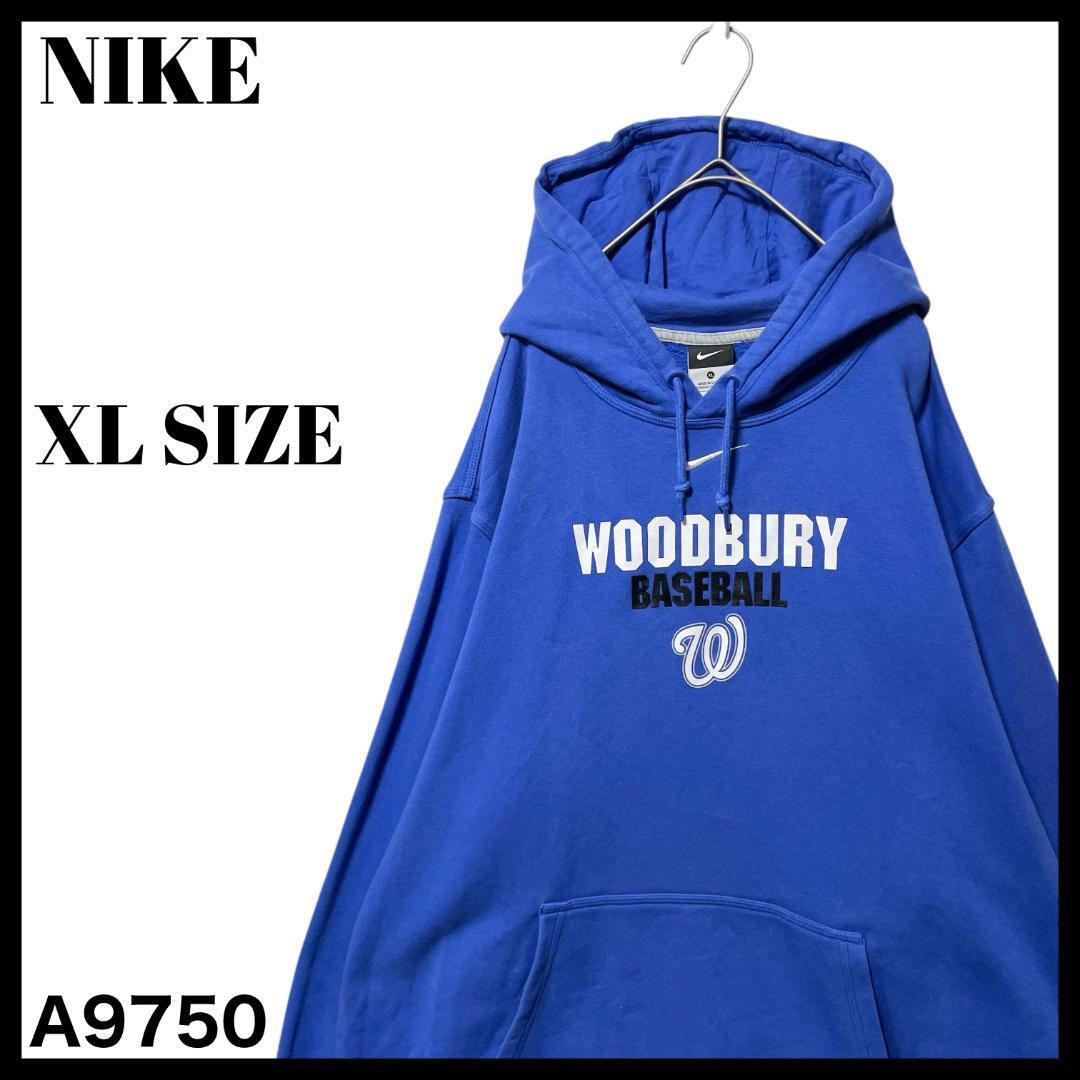 | 【A9750】NIKE ナイキ Woodbury Baseball チームロゴ スウェットパーカー フーディー 青 ブルー メンズ XL 大きいサイズ | ||||