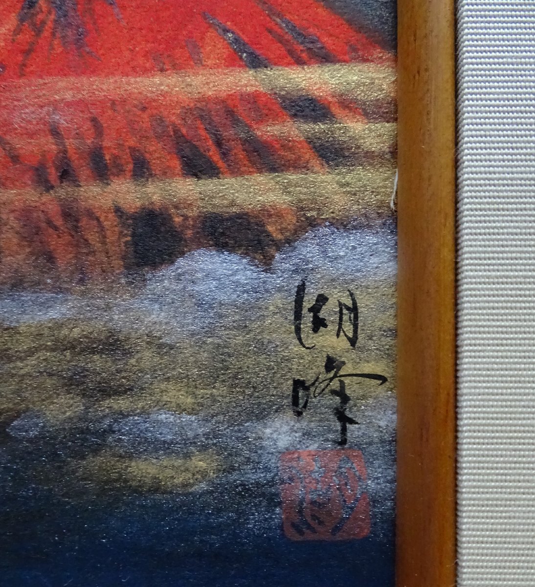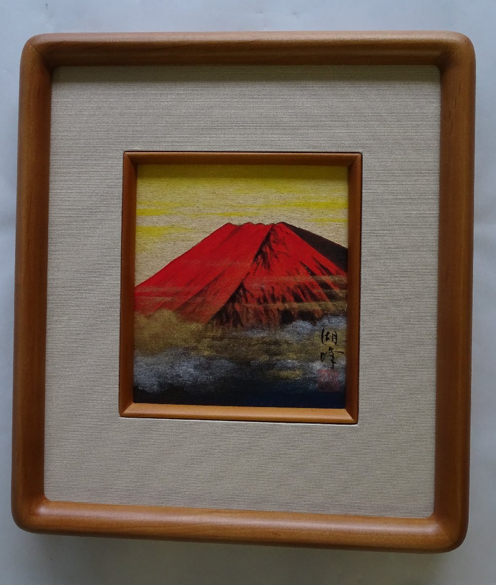 ・作者: 藤原湖峰 ・画題: 赤富士 ・技法: 色紙絵(手描き) ・NO-R6-4-12.5