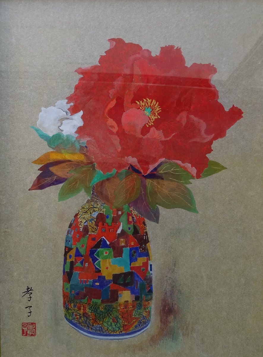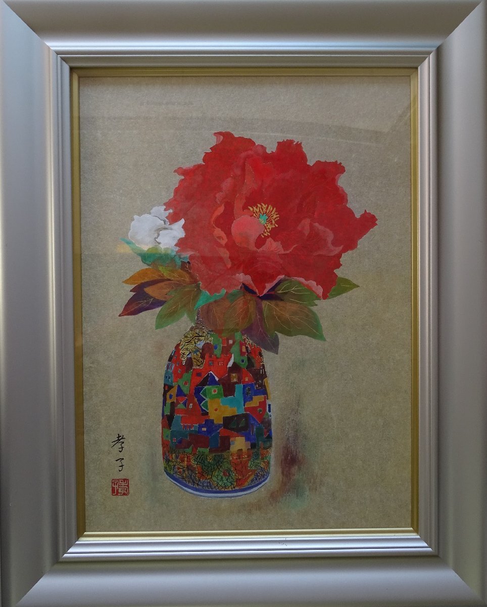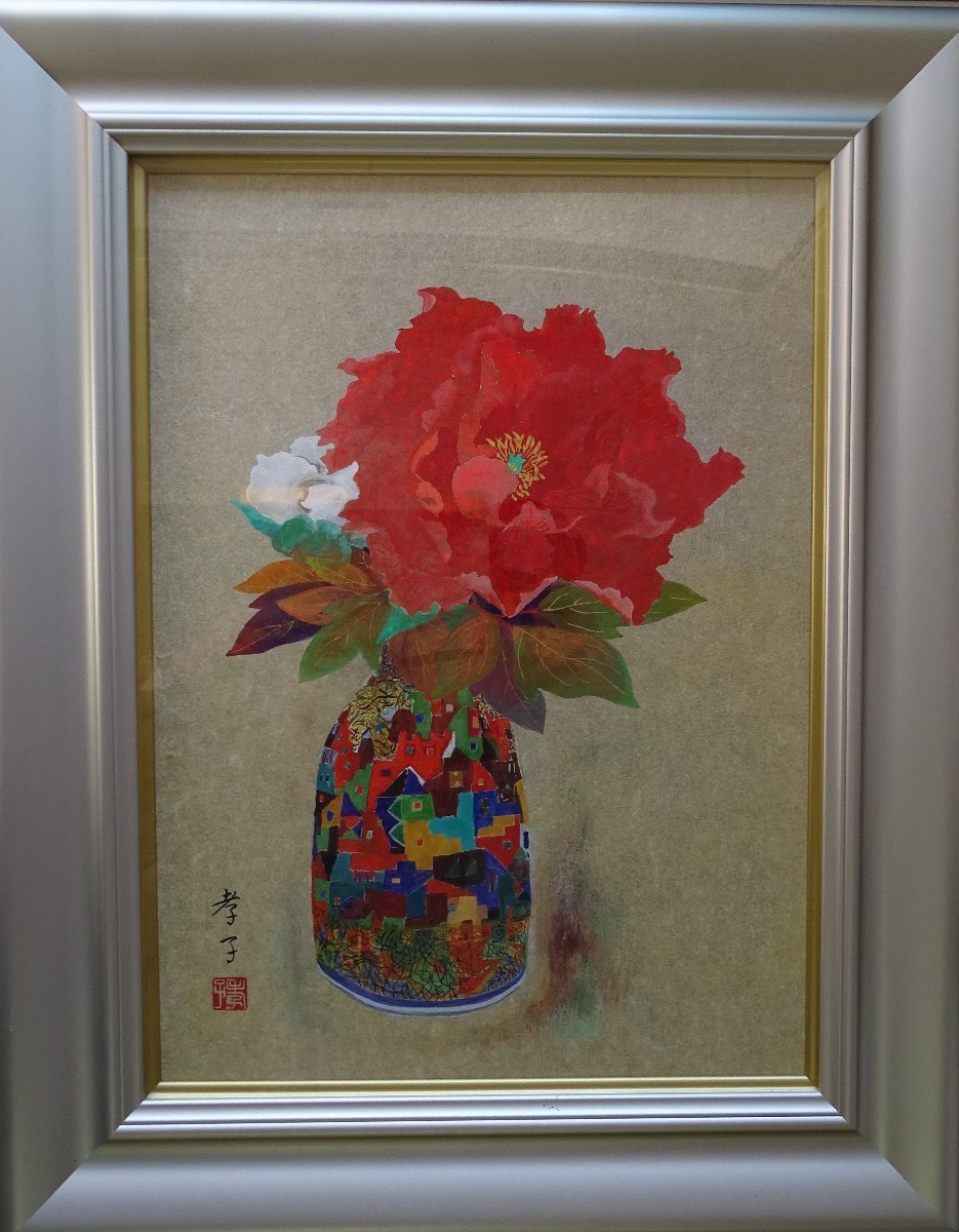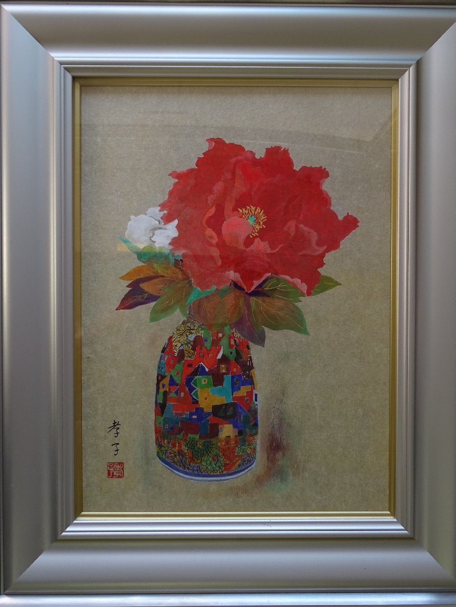 ・作者: 孝子作 ・花瓶に牡丹 ・技法: 日本画 NO R6-2-38.