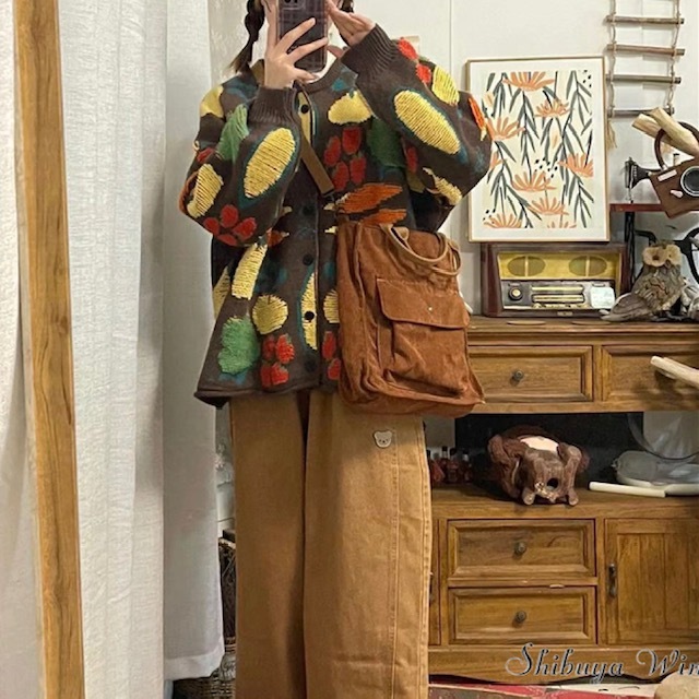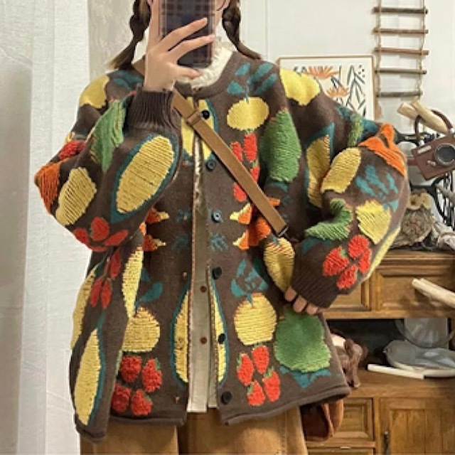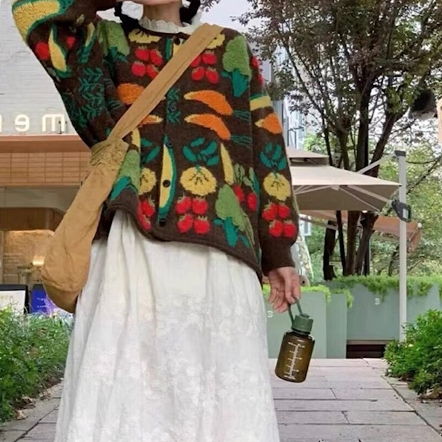 | 【サンプルセール品】未使用品★カーディガン クルーネック 果物 野菜柄 | |
