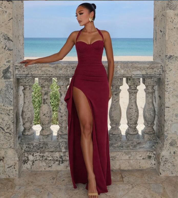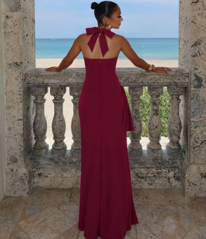 406 ワンピースladiesレディース ◇ 綺麗めシルエット ◇  上質    ドレス  ホルターネック  red