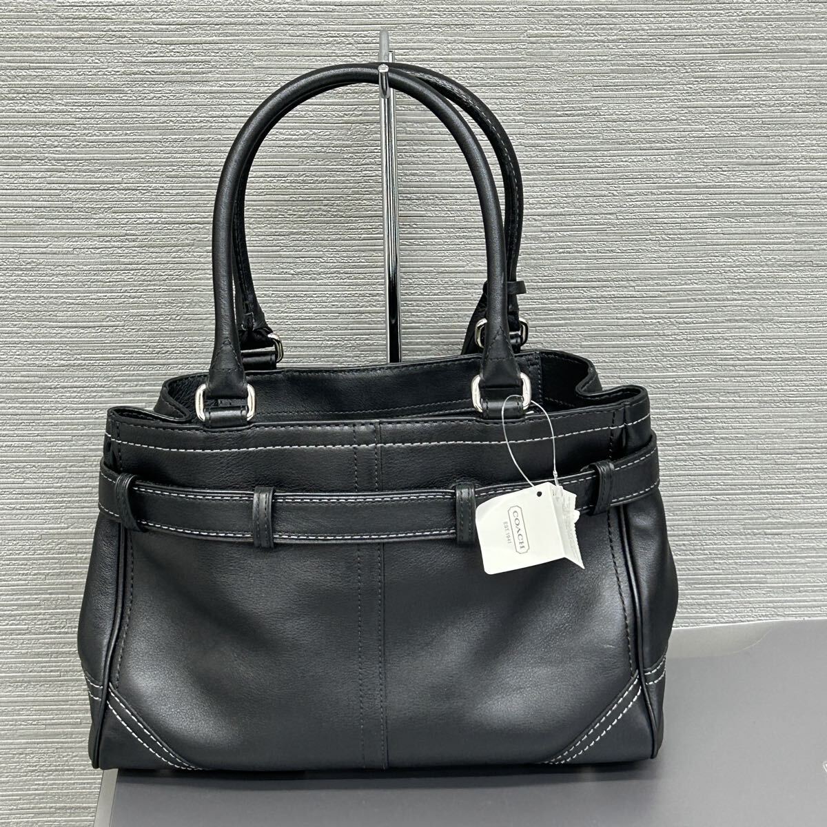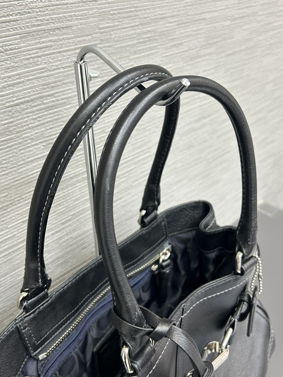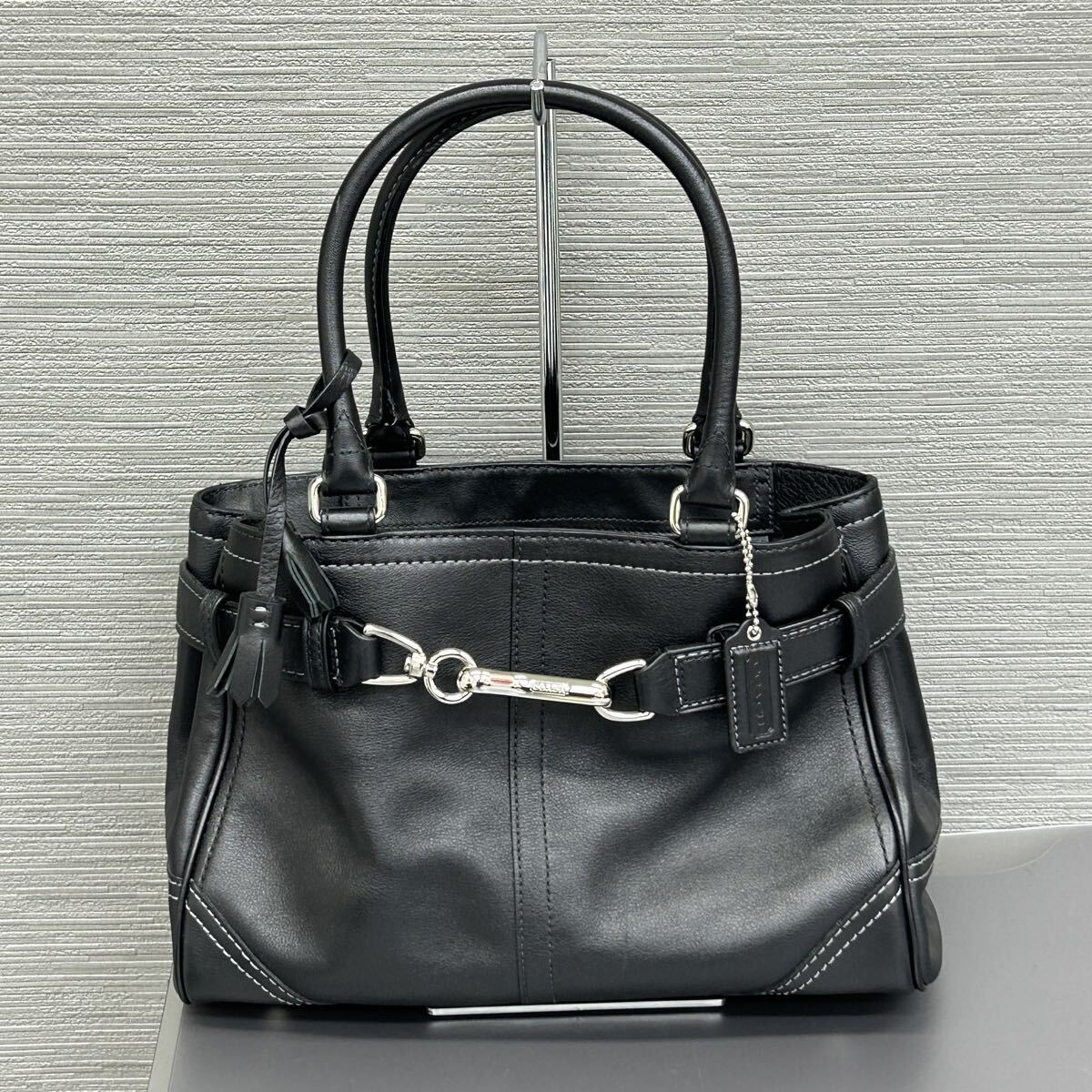 1円~ COACH コーチ F08A70 ハンプトンズ サッチェル ハンドバッグ トートバッグ レザー 革 ブラック 黒 シルバー金具 レディース