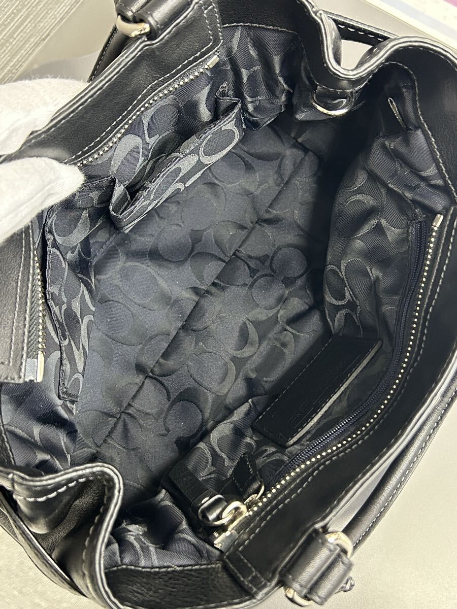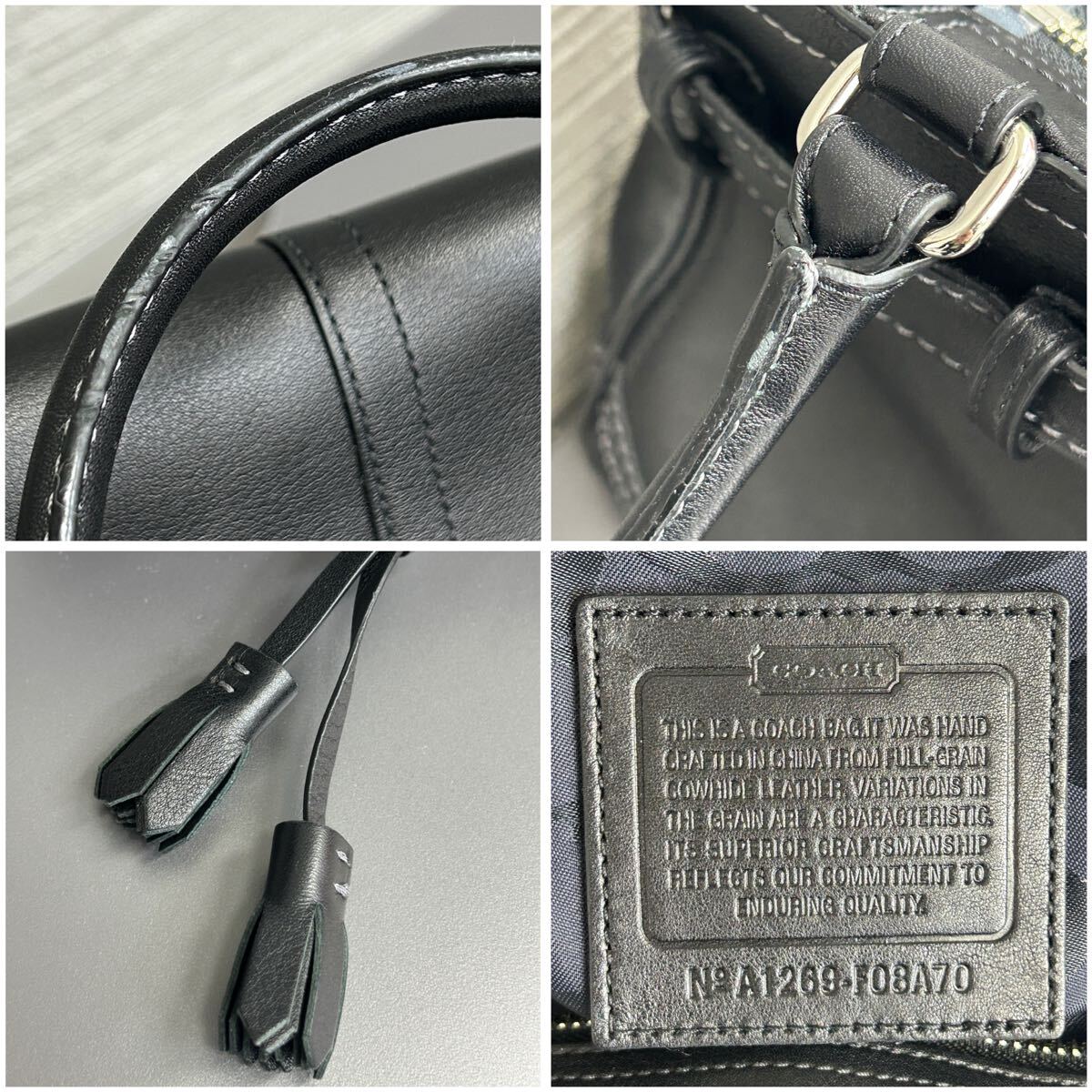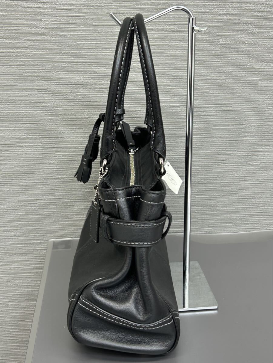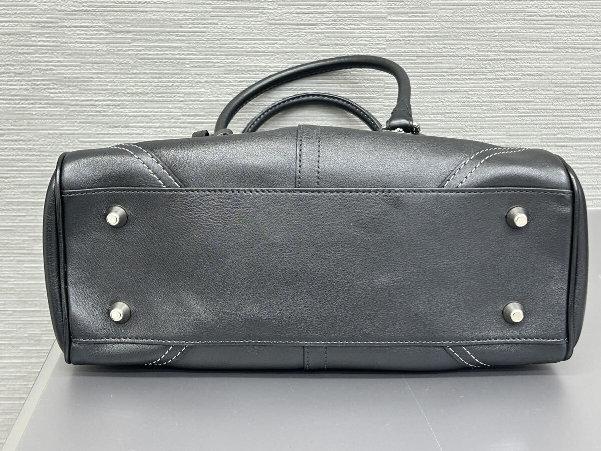 1円~ COACH コーチ F08A70 ハンプトンズ サッチェル ハンドバッグ トートバッグ レザー 革 ブラック 黒 シルバー金具 レディース