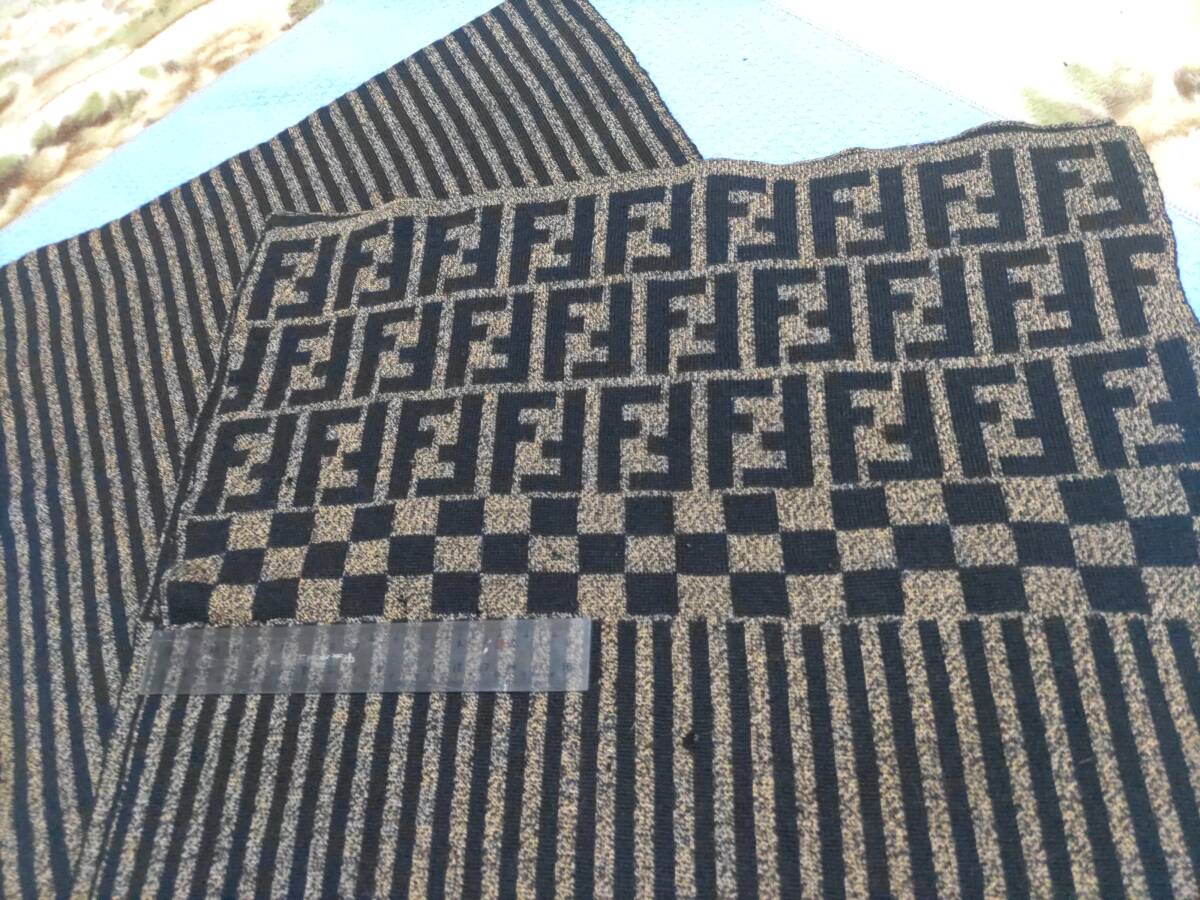 ブラウンとブラックのストライプとチェックのデザインが特徴的なFENDIのマフラー。