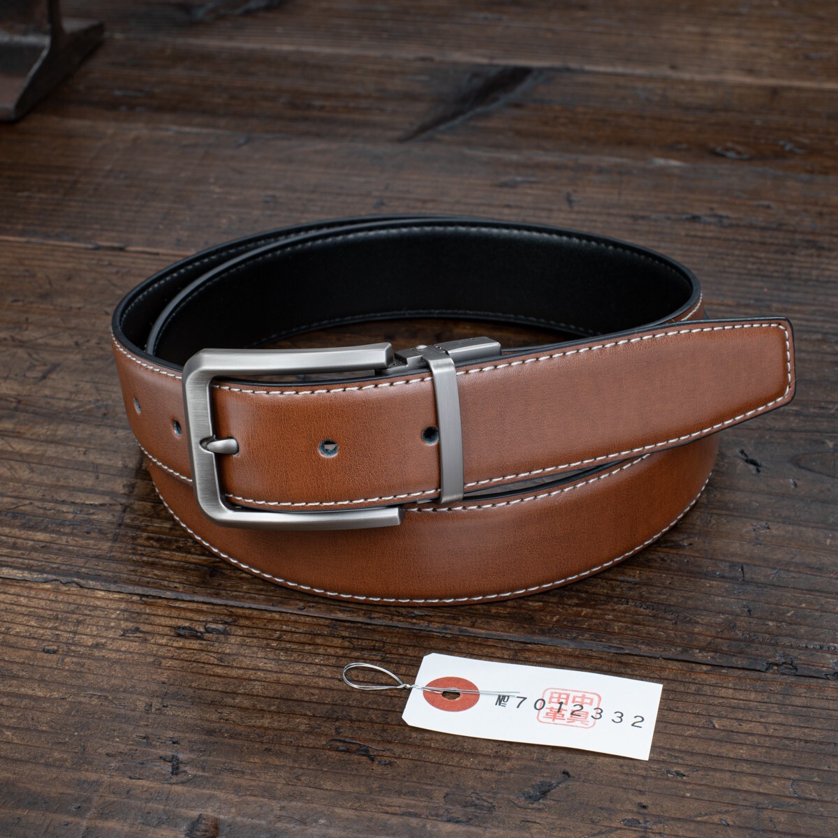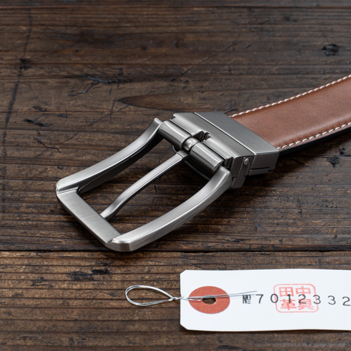 リバーシブル【本革】イタリアンレザー ステンレスバックル メンズ ベルト ビジネス カジュアル 新品 未使用 送料無料 1円 茶 黒 田中革具