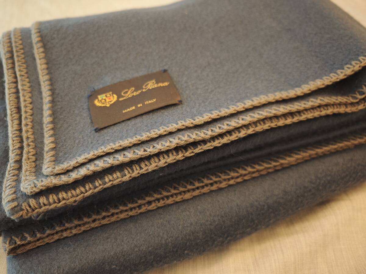 カシミアのクオリティはもちろんロロピアーナですから最上級品です。一般に、大判になればなるほど誤魔化しがききませんから、特に上質なものを用います。ソファなどにおいて、少し肌寒い時などひざ掛けとして用いたり、そのまま昼寝用のブランケットに用いたり、かなり使い勝手が良い商品であると感じます。