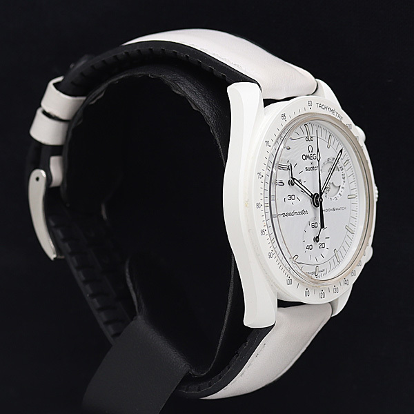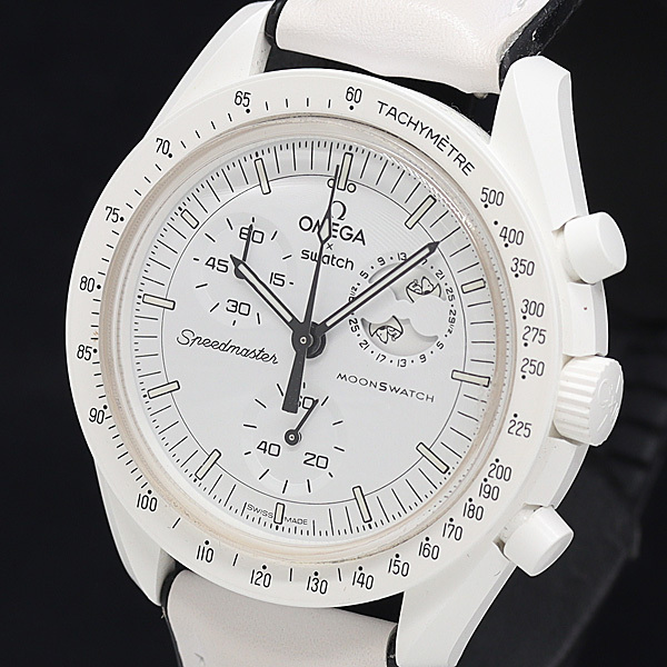 1円 稼働 良品 オメガ ×スウォッチ QZ SO33W700 スピードマスター ムーンフェイズ クロノ 白文字盤 メンズ腕時計 0078100 11JWT IKE