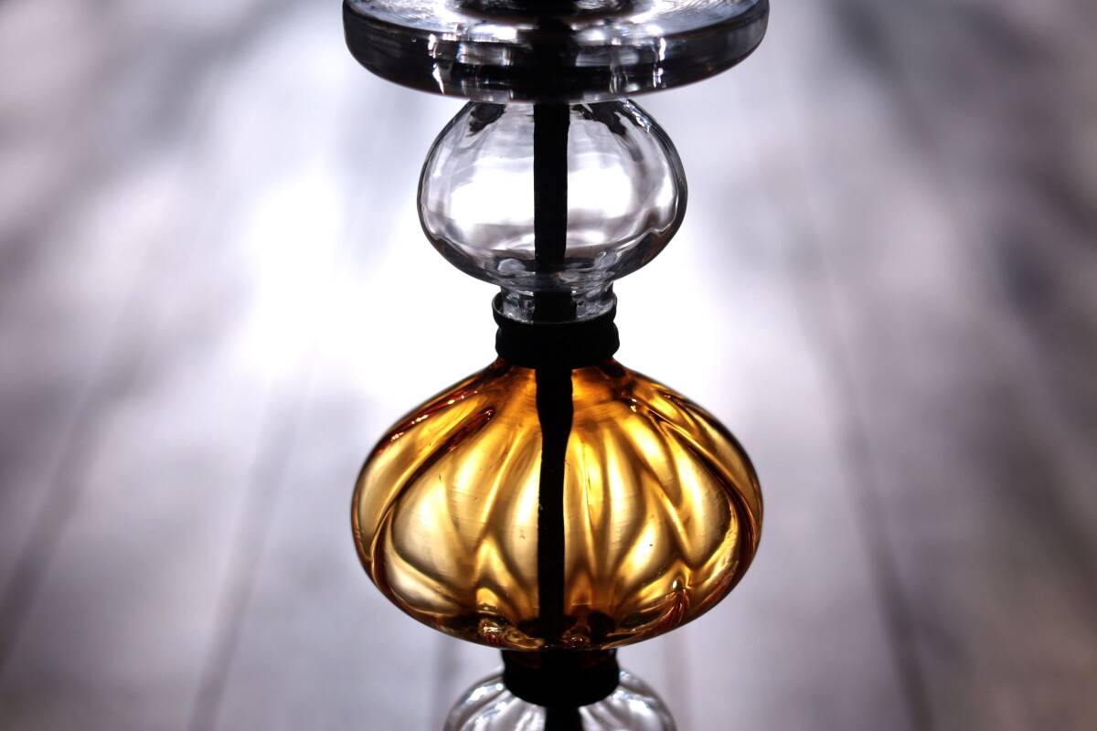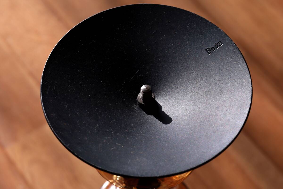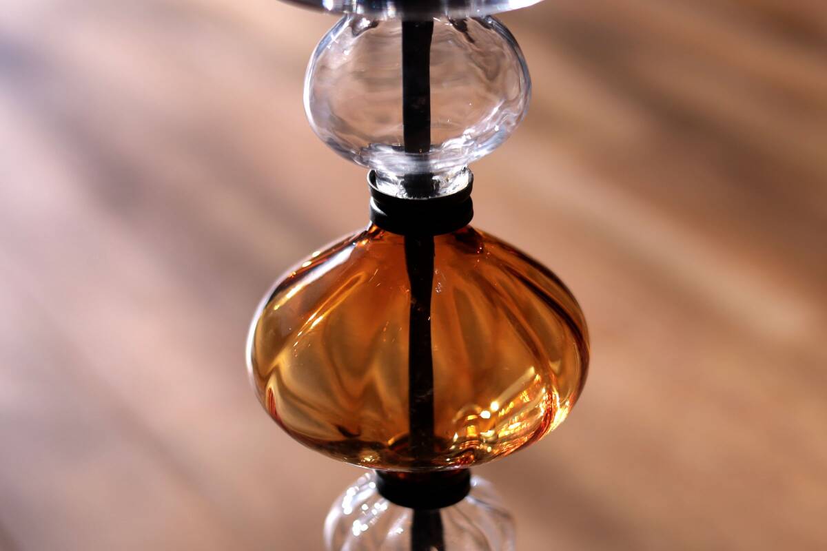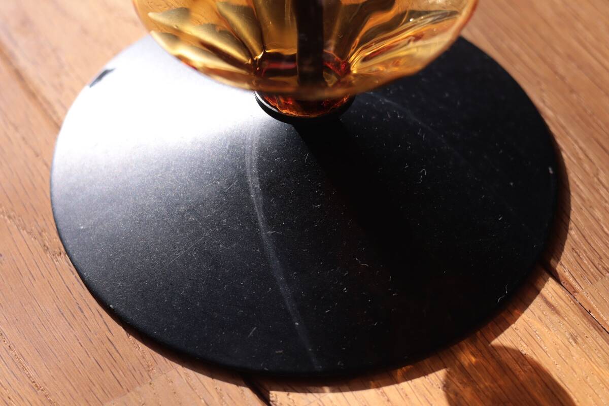 | 商品説明 | 品名:Glass Candle Stand キャンドルスタンド デザイン:Erik Hoglund エリック・ホグラン メーカー:Boda ボダ社 製造年代:1950年代-1970年代 カラー:Amber&Clear(アンバー&クリアー) サイズ:Φ13.8cm(土台部分)H36.0cm コンディション:ガラス部分は、製造時及び、経年の擦れや汚れの付着がありますが、キャンドルスタンドは一度解体して、ガラスは出来るだけ綺麗に洗浄していますので、汚れの付着はあまりなく綺麗です。アイアン部分は、経年の擦れや錆はありますが綺麗な状態です。全体としましては、とても良いコンディションです。*ガラス制作上特有の歪み、しわ、くぼみ、気泡の割れ等がある場合があります。また、留め金に接するガラス部には小さなカケや削れなどがありますのでご理解頂ければと思います。 アンバーとクリアのそれぞれ形が違うガラスの連なりがとても美しいキャンドルスタンド。約36cmの高さで存在感があります。底部にBODA社の刻印が入っています(画像7)。 |