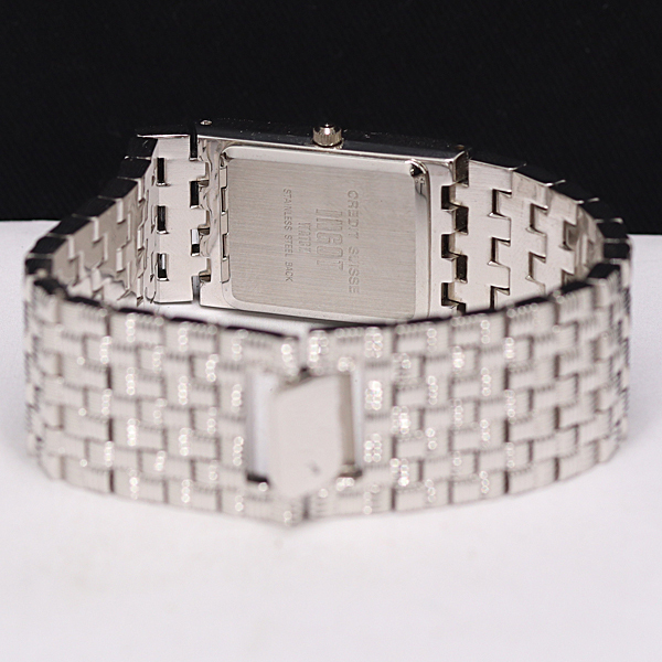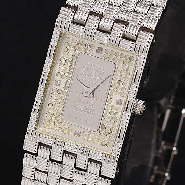 1円 保/箱付 稼働 クレディスイス プラチナインゴット スクエア QZ シルバー文字盤 レディース腕時計 0594000 11ERT MST