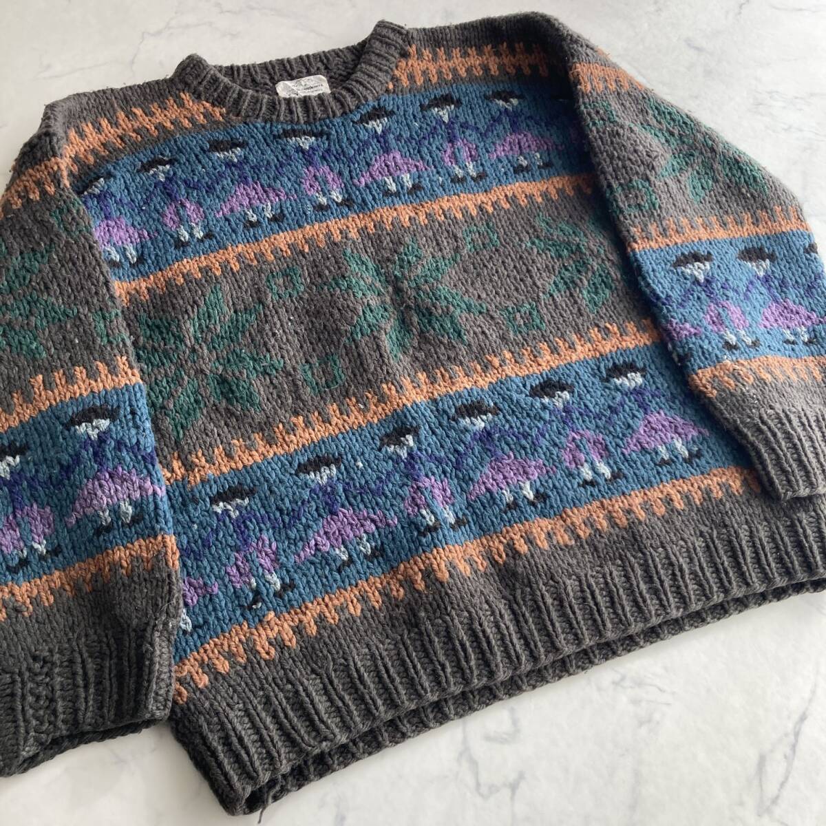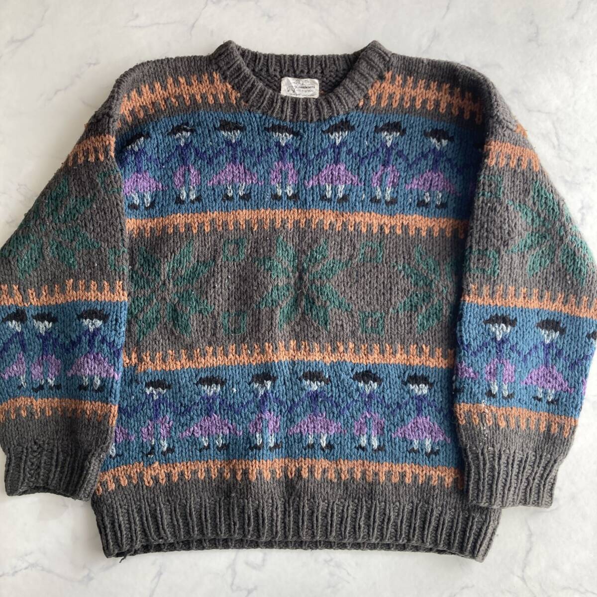 サイズL!!大きいサイズ◎【ボリビアの手編み仕立て!!】■BOLIVIAN HANDKNITS■ ざっくりと編み込まれたローゲージニットセーター