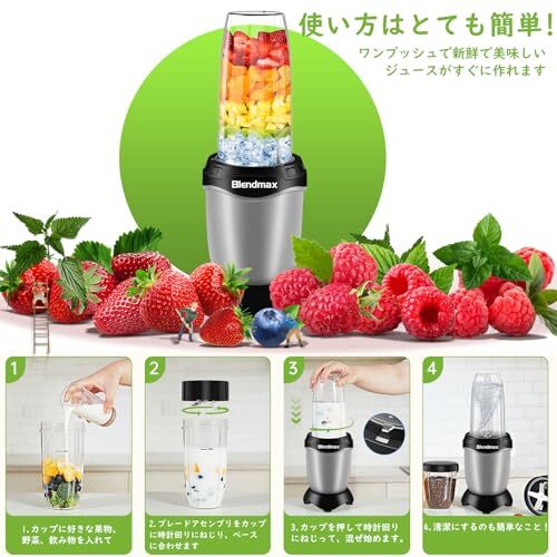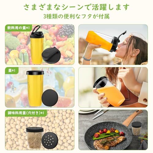 【使いやすい&お手入れ簡単】小型ミキサーはカップを押すだけで簡単に操作でき、わずか10~60秒でお気に入りの飲み物を手早く作ることができます。蓋も付いているため、蓋を閉めれば冷蔵庫での保管も可能です。また、ハンドブレンダーよりも安全で、ケガをする恐れもありませんし、飛び散りの心配もありません。初心者でも簡単に操作できる設計です。ケガをする恐れもございません。ミキサーについてお手入れでお困りの方が多かったので、本製品は取り外して細部まで水洗い可能です。カッターの刃と台座が外せるため、細かい汚れもしっかり落とせます。細かく分解できるので簡単かつ衛生的です。忙しい毎日でも、スムージー生活がおいしく続けられます。