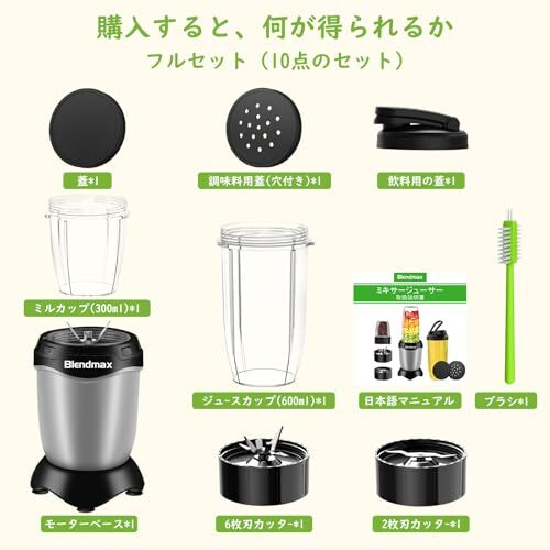 ジューサー ミキサー 氷も砕ける 【1台多役10点セット&2種類の刃6枚刃+2枚刃&2つボトル600ml+300ml 】ミキサー