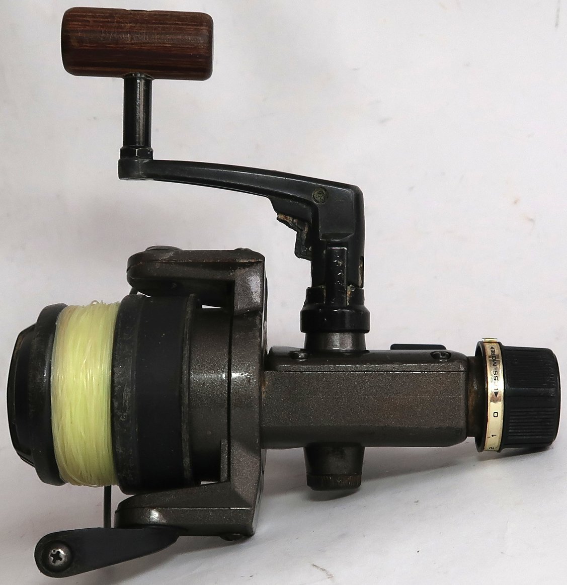 プレートやシールがないので正確な型番の名称がわかりません。出品は画像の物のみです。使用品ですので傷や汚れが有ります。両面のプレートがないです。テストしましたが操作はできましたし、動作しております。ラインは中古ですので性能は分かりませんし、どの程度強度が有るかも分かりません。難ありというのはハンドルを回すとシャーシャーと音がします。気にならなければ軽くは回せるので普通に使用できます。その他の操作はできております。分かることは以上です。このような状態ですのでお取引後はいかなる理由がありましても返品はできませんしクレームはお受けできません。