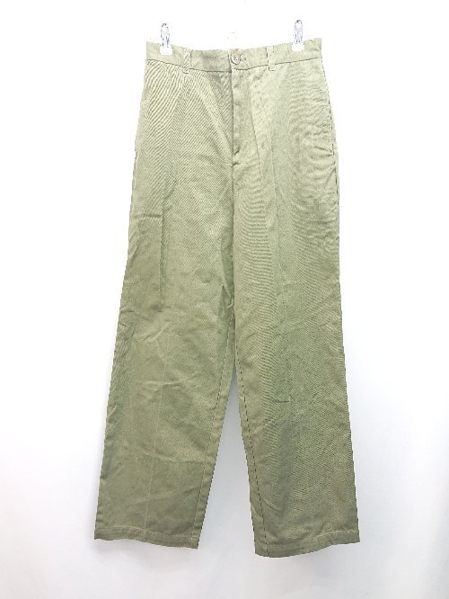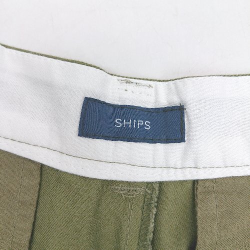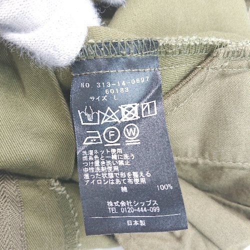 ◇ SHIPS シップス 無地 センタープレス ストレート パンツ サイズL カーキ レディース E