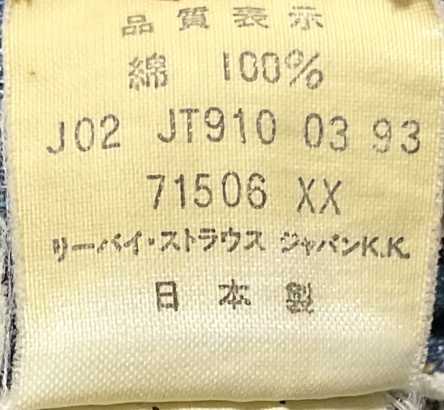 LVC LEVI'S VINTAGE CLOTHING 71506XX/サイズ40 日本製/93年製 ミディアムインディゴ   W220