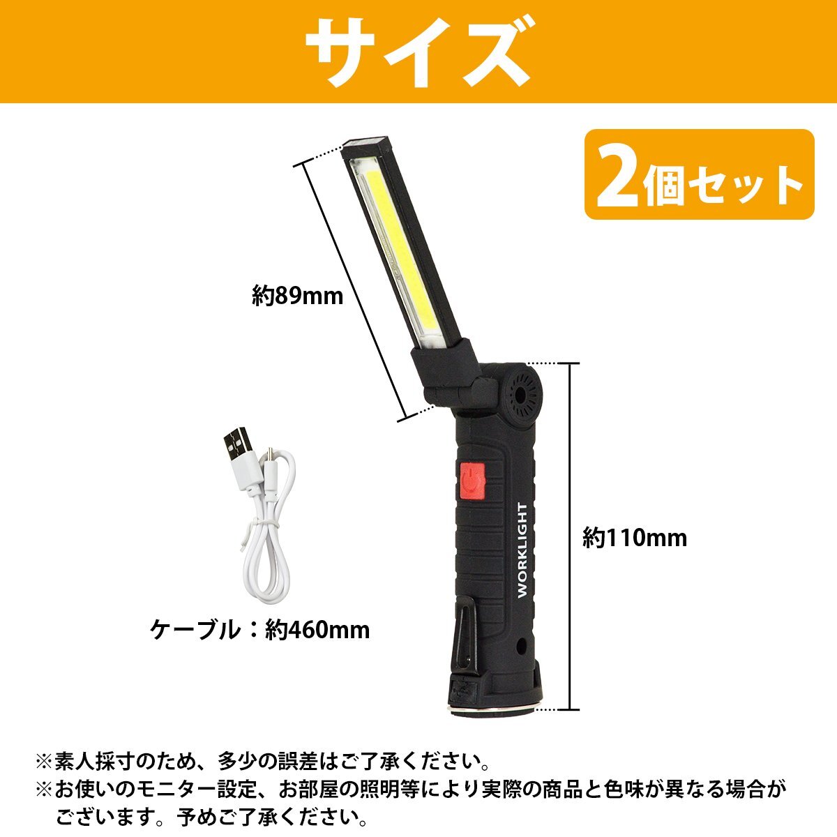 2個セット LEDライト COB LED 作業灯 防水 360度 回転 折畳み式 USB 充電式 懐中電灯 マグネット 多機能 ワークライト
