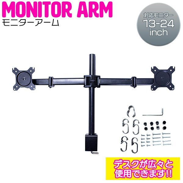 オフィス デスク モニターアーム 13インチ~24インチに適用 モニターブラケット 角度調整可能 パソコン 追加モニター ツイン画面