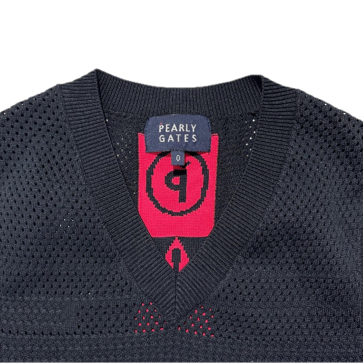 coco 中古【値下げ】 パーリーゲイツ PEARLY GATES レディース ベスト 0(S) 黒 ブラック Vネック ニット ネコポス発送可 102788