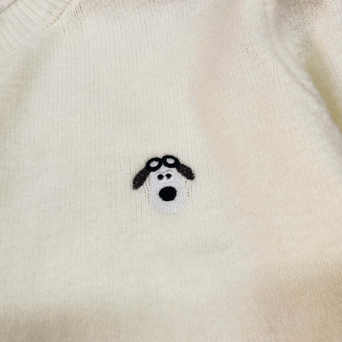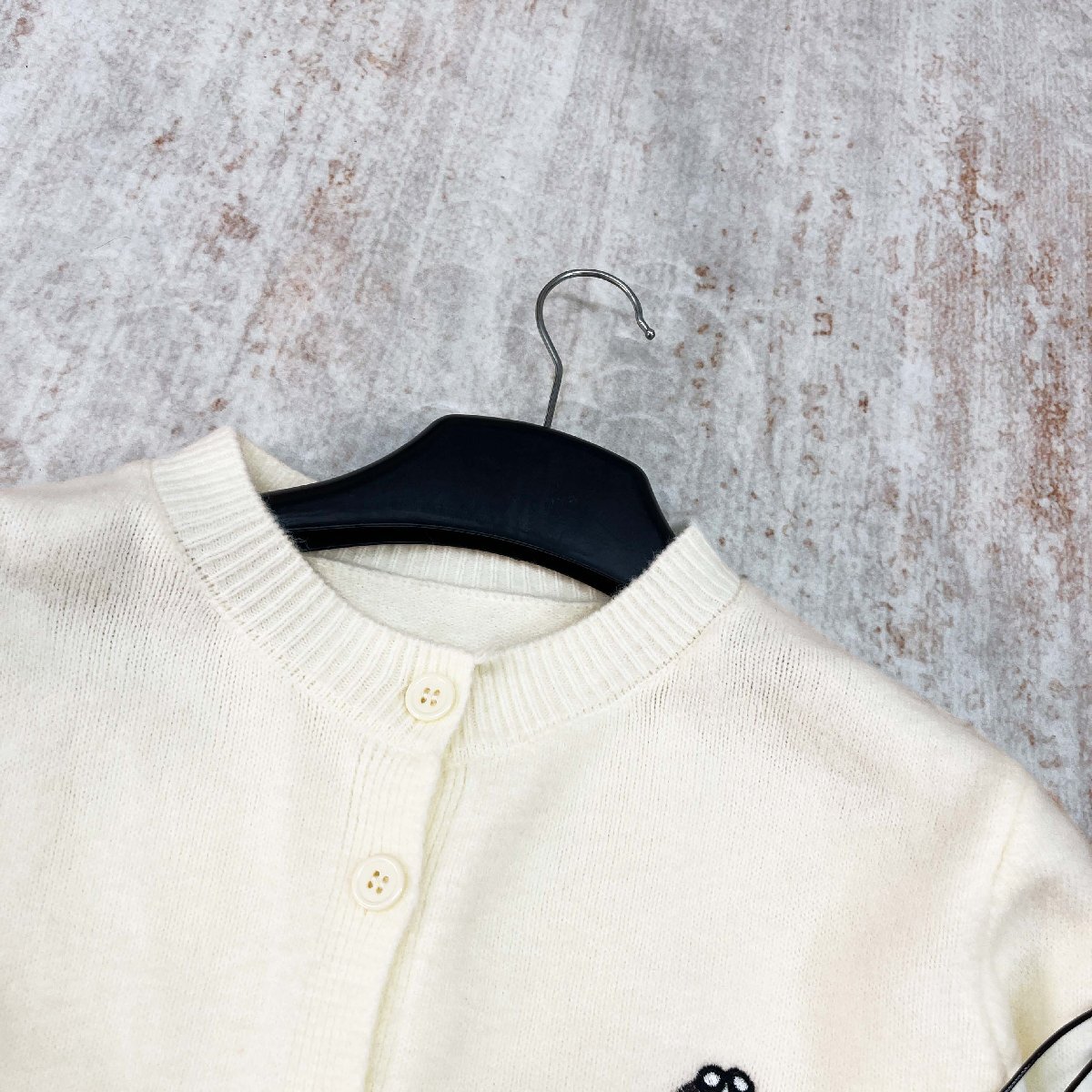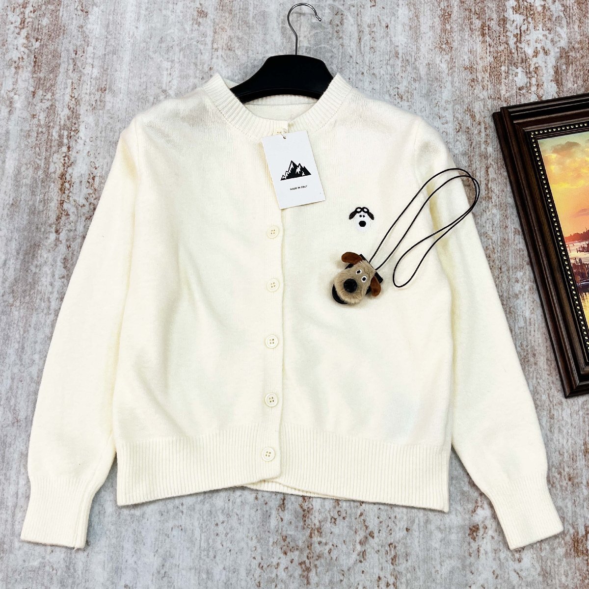 カーディガン イタリア製造 ウール混 ソフト 犬柄 チャーム付き ショート丈 シック 可愛い アウター トップス ニット レディース SIZE:L