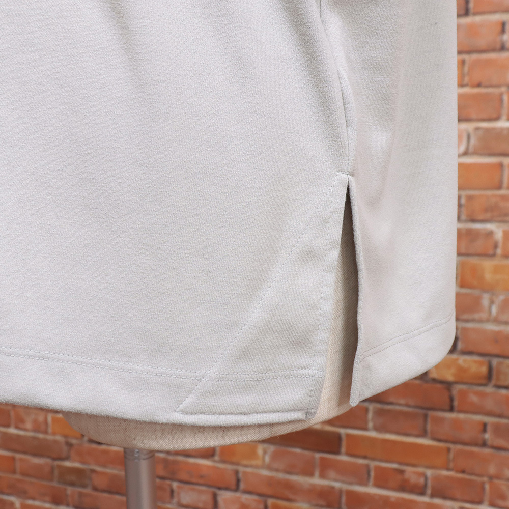 幅広いコーディネートに活躍してくれる、シンプルで使い勝手のよいロングスリーブTシャツ。さらりとソフトな優しい肌触りのポリエステルジャージーを使用しています。しなやかな風合いでストレッチも効いており、着心地はとても快適。イージーケアで着用後もシワにもなりにくく、伸びやダレも少なく、毛玉の発生も防ぎます。UVカット機能もあり、更に吸水速乾性にも優れた素材です。ゆったりめながら、だらしなく見えない絶妙なシルエットも好ポイント。ポケットの内側とスリットの裏側にEt baasロゴモノグラムのメガネ拭き生地をあしらい、メガネやスマートフォンの汚れをサッと落とせるユニークなデザインとなっています。