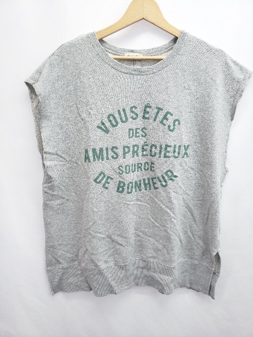 ◇ Θ SM2 サマンサ モスモス フロントプリント フレンチスリーブ トレーナー スウェット サイズF グレー レディース E