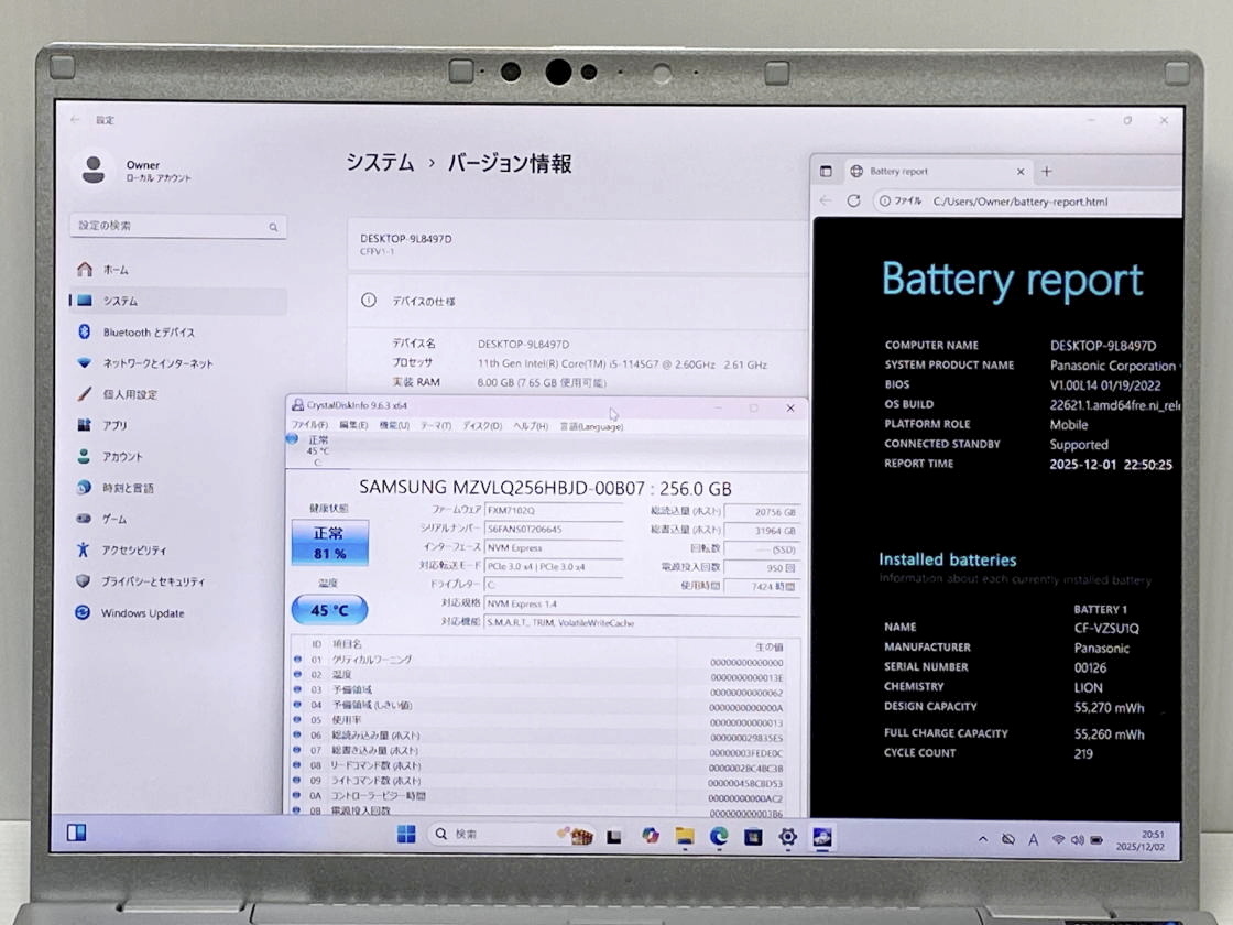 中古品につき擦り傷などございます。トップカバーにスレがございます。液晶の発色良好です。加圧などは確認できません。 キーボードは写真でご確認ください。 WINDOWS11 64bitリカバリ→Windows update最新 11リカバリ領域、リカバリメディア作成アプリあります。 バッテリ充電可 OS表示時間2時間57分~13時間03分 目安として 下記バッテリレポートをご参照ください。 WindowsBatteryReport 55260/55270mWh ACアダプタ付属 Officeは付属しません。 |