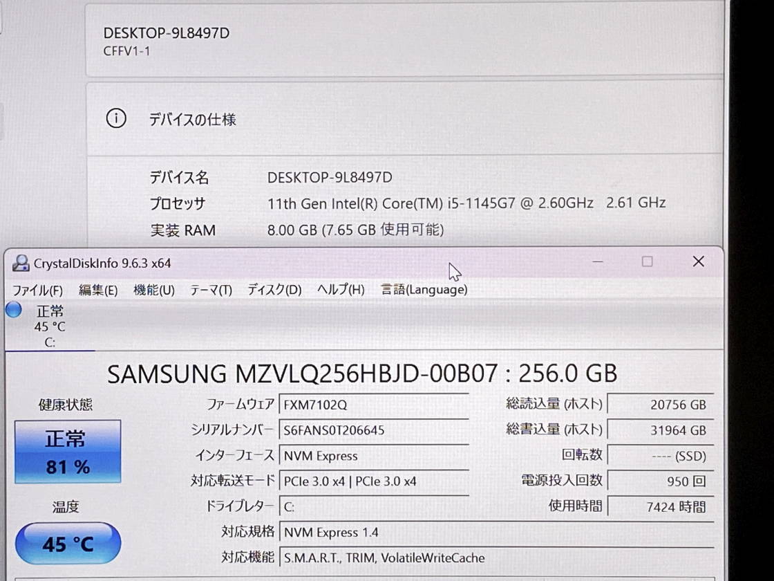 | CPU | 第11世代TigerLake Core i5 1145G7 2.6GHz |
