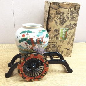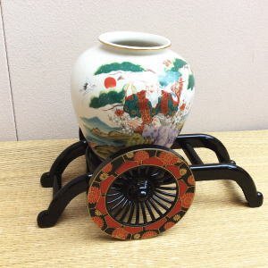 【新品】2900円伝統工芸 車台付き九谷焼花瓶 花器、花瓶 正月用品