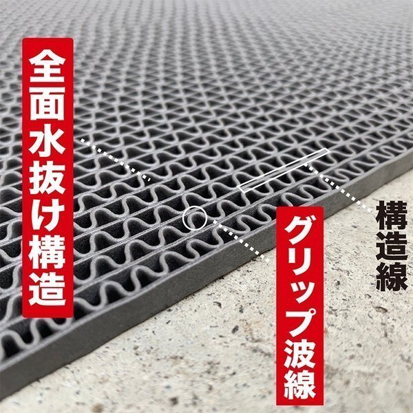 マット全体がメッシュ状で、足の下の水が抜け、滑りの原因を大きく低減します。