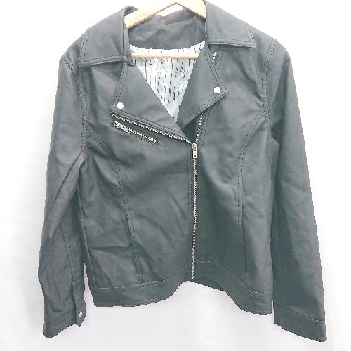 ■ 大阪府布帛製品工業組合 フェイクレザー 長袖 ライダースジャケット サイズL ブラック レディース E