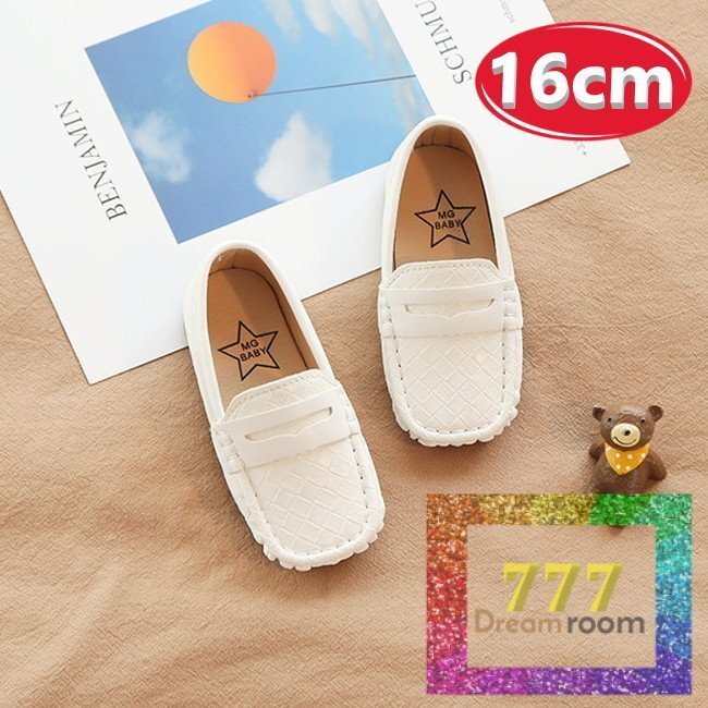 1スタ☆kids イントレチャート ローファー シューズ 【ホワイト 16cm】靴 フォーマル 編み込み 合皮 入学式 レザー