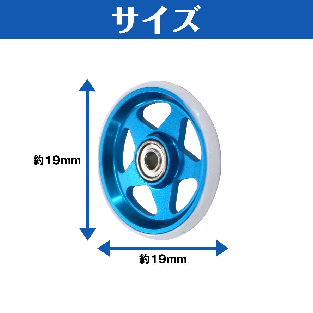 ミニ四駆 オール アルミ ベアリング ローラー 4個 セット 19mm プラリング付 5本スポーク 星型 ブルー×ホワイト パーツ