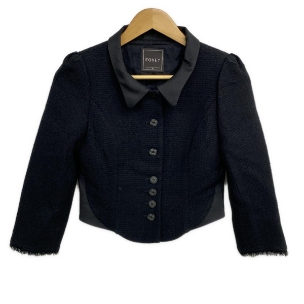 フォクシー FOXEY サイズ38 M 黒 レディース 春・秋物/七分袖 ジャケット