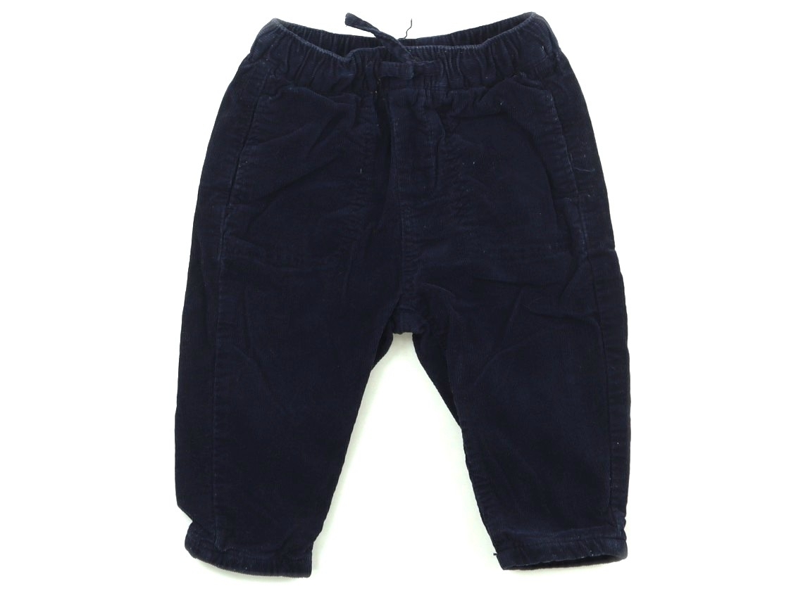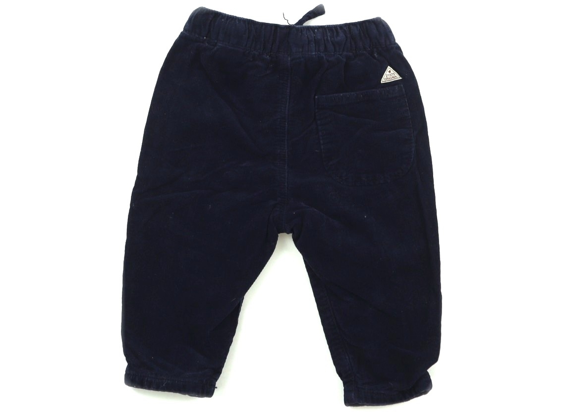実際のサイズ表記は9-12m/80cmです。全体的に毛羽立ちがありますが、まだまだ普段着として活躍してくれそうです。ウエストは総ゴムです。コーデュロイ調生地。品質タグが切られています。