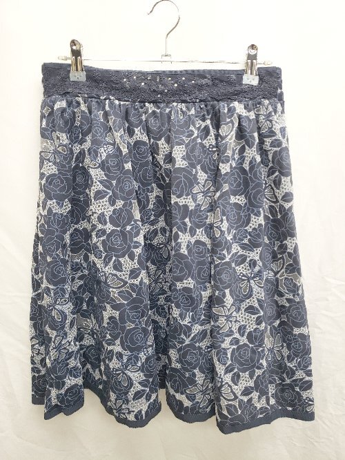 ◇ axes femme アクシーズファム 膝丈 ギャザー スカート サイズM ネイビー マルチ レディース P