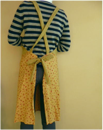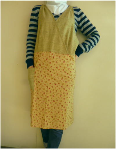 【鹿の子&小花プリント手作りサロンエプロン】