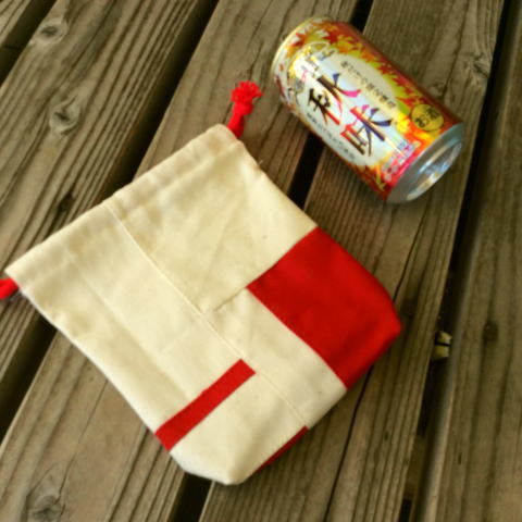 【入学、入園!】450円ポップアップ(赤)パッチワーク巾着袋 【手作り小物】