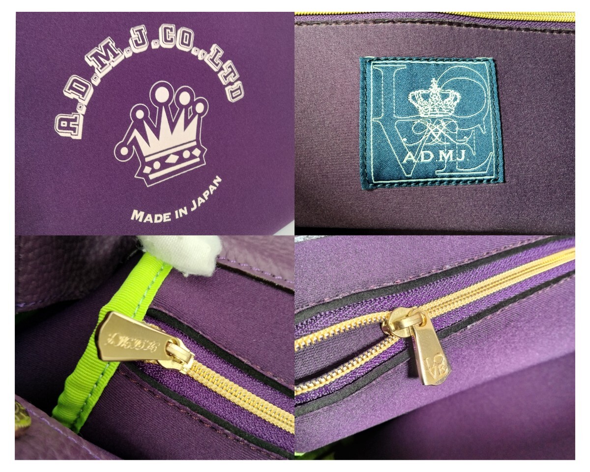 ADMJ エーディエムジェイ マジックライト トートバッグ ロゴプリント 王冠 A4可 パープル