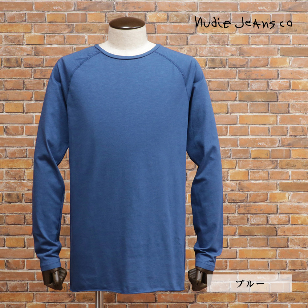 1円/Nudie Jeans/Lサイズ/長袖Tシャツ OTTO RAW HEM クルーネック オーガニック ヌーディージーンズ 新品/青/ブルー/me214/
