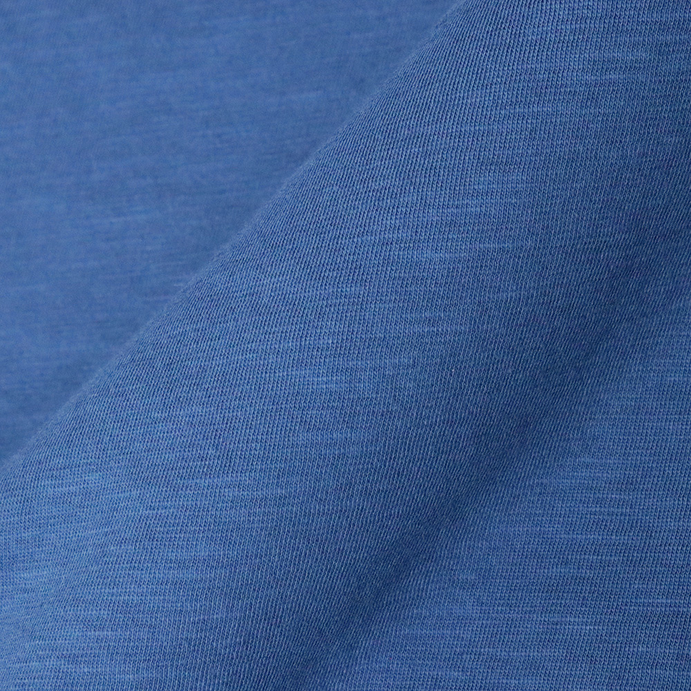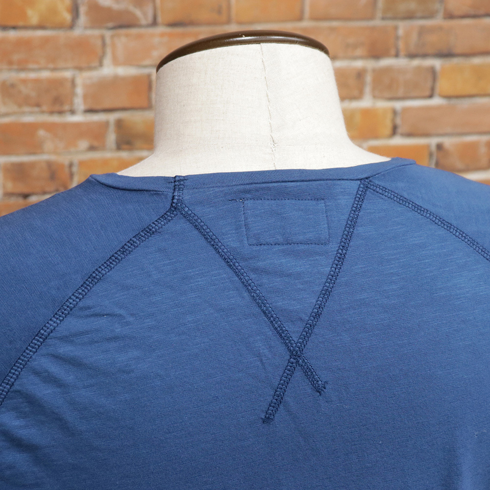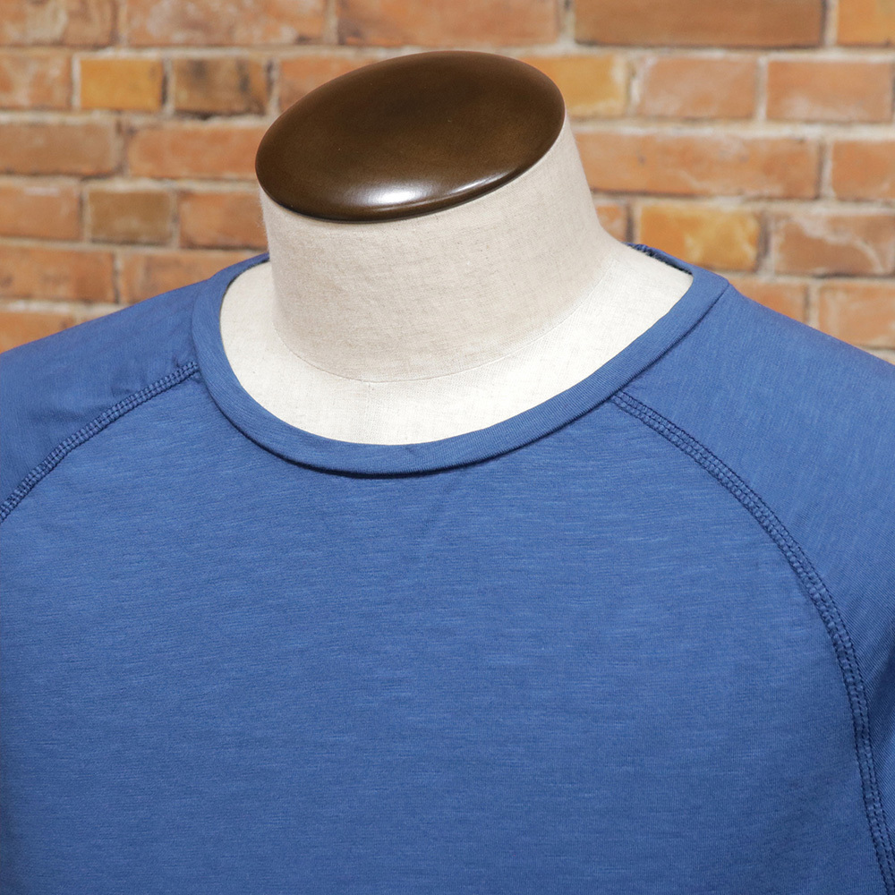 オーガニックコットン100%のスラブジャージーを使用した長袖Tシャツ。スラブ糸の自然な凹凸が生む軽やかな肌触りと、ヌケ感のある表情が魅力です。クルーネックにラグランスリーブを組み合わせ、肩まわりにゆとりを持たせつつも、すっきりとしたシルエットに仕上げています。