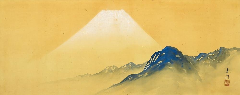 【真作】【WISH】山内多門 日本画 30号 大作 絹本 ◆山並みに映える白富士の美   〇川合玉堂門 帝展審査員 文展二等賞 #25112331