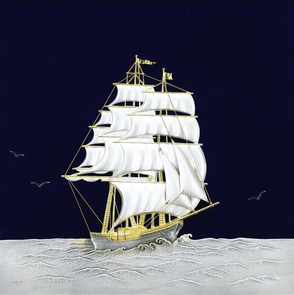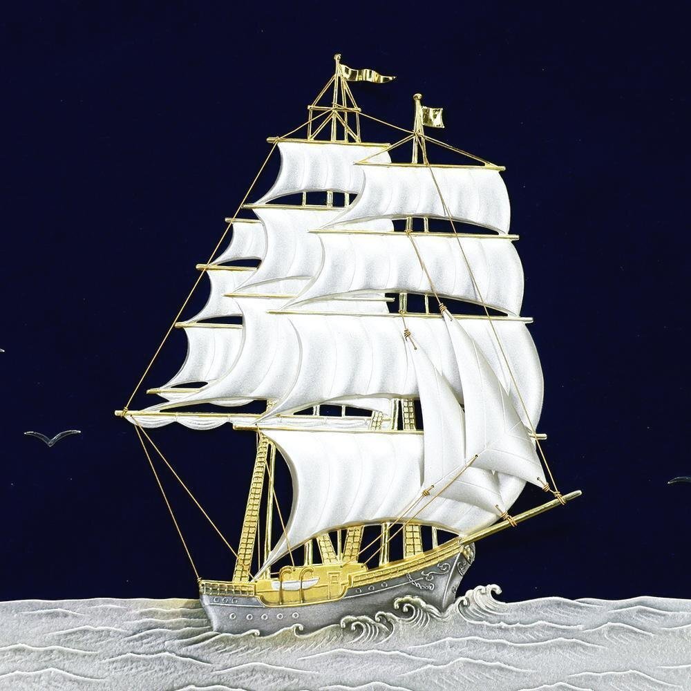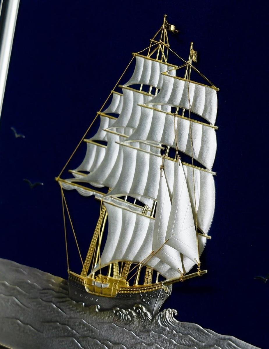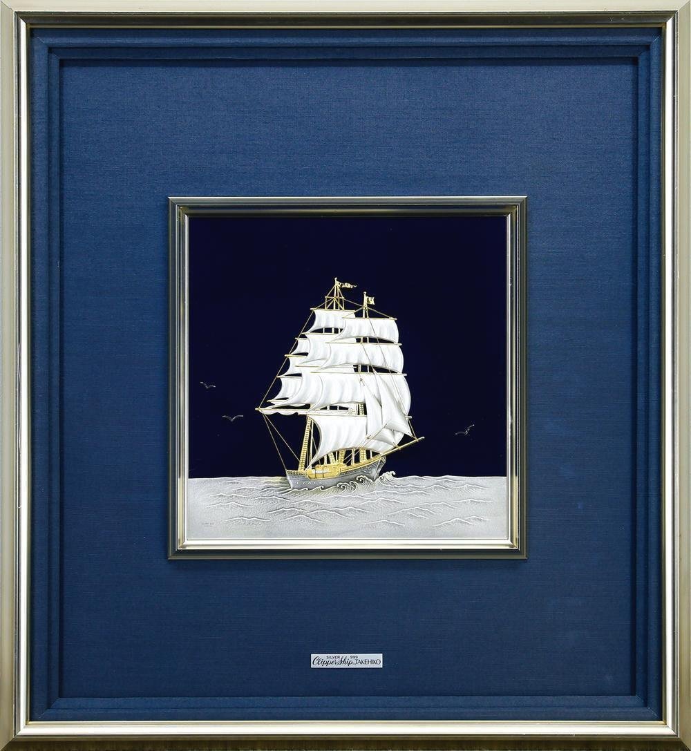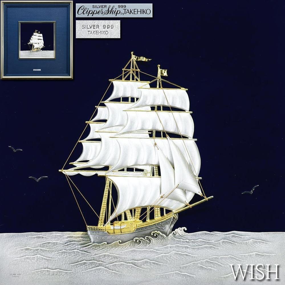 【真作】【WISH】関武比古【二代武比古】「Clipper Ship」純銀レリーフ ◆純銀 SILVER999 帆船   〇二代目武比古 #25113007