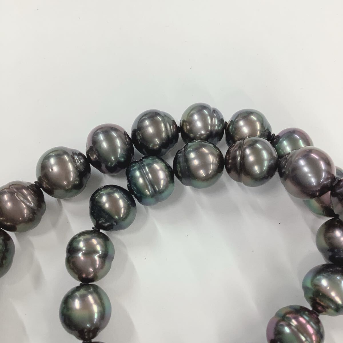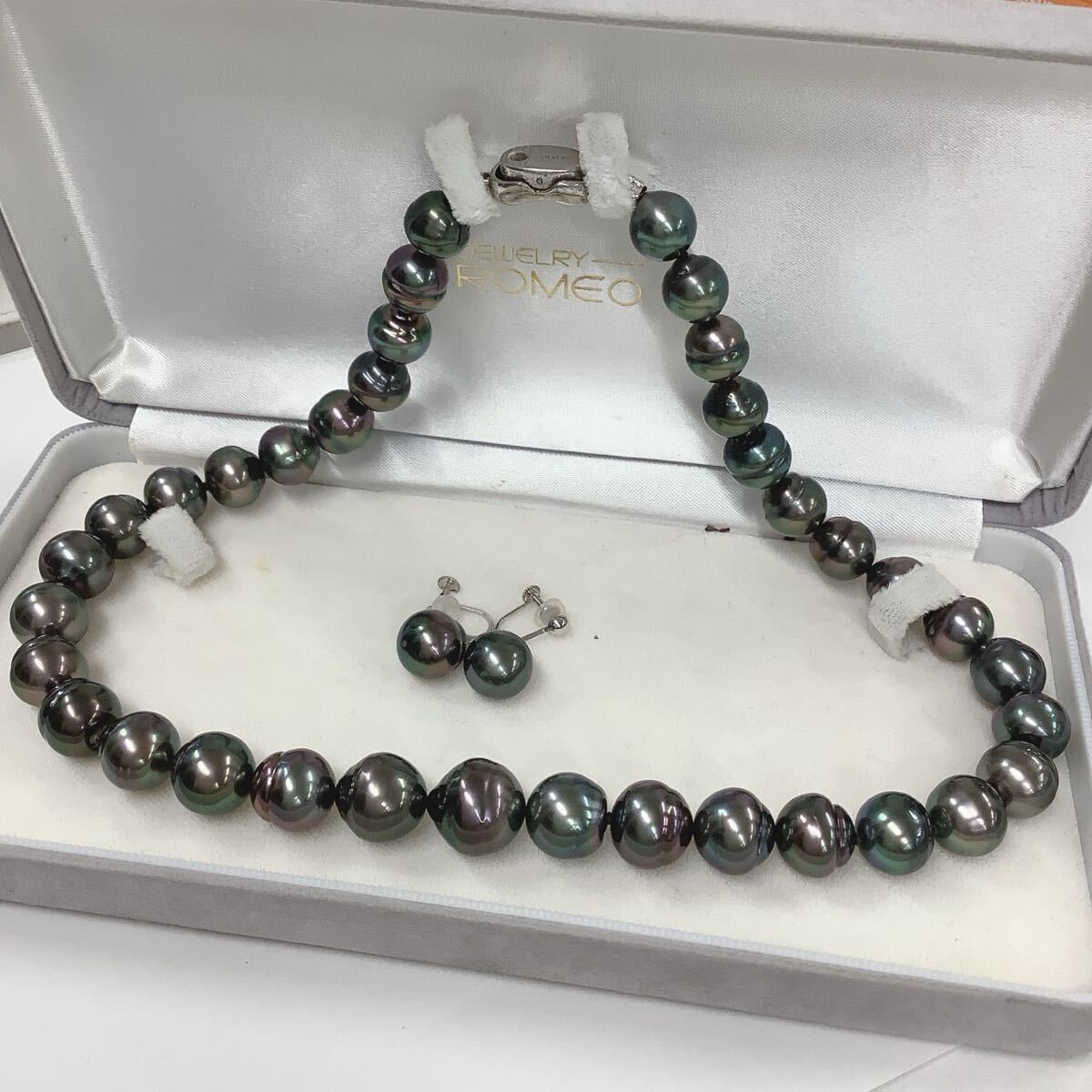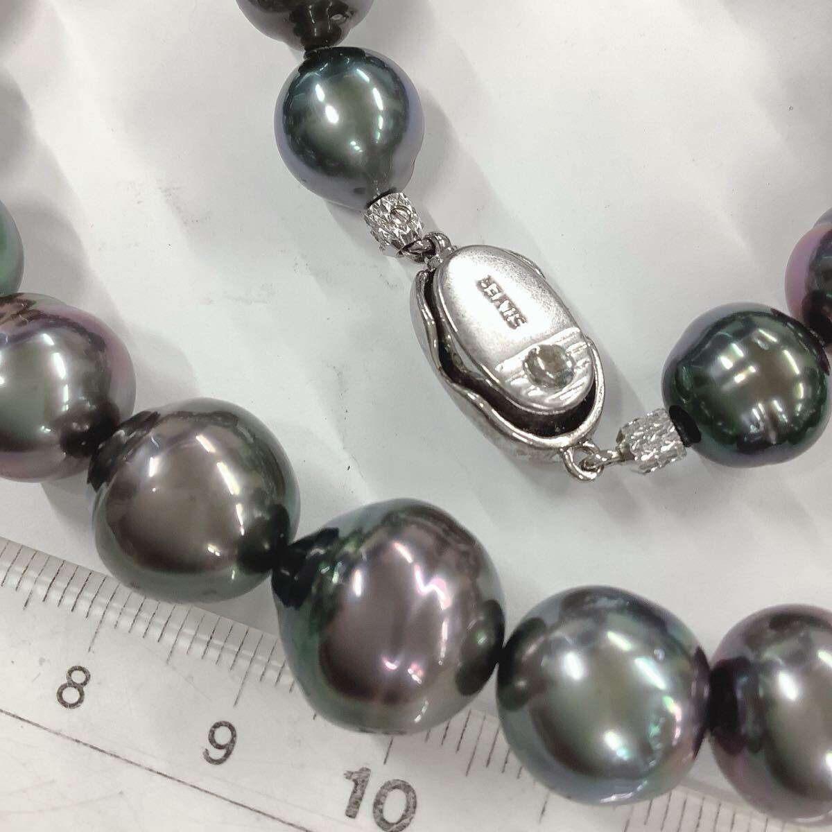 ●ユ2186H◎艷やかバロックパール 黒蝶真珠? ネックレス 約44センチ 留具SILVER・イヤリング台K14WG刻印あり◎