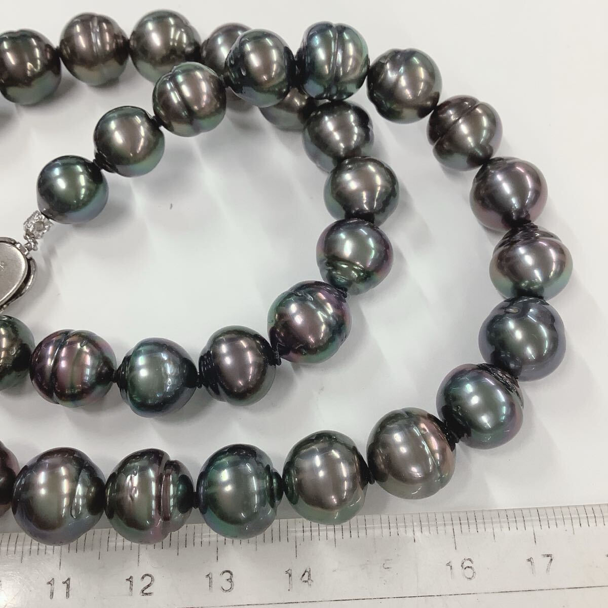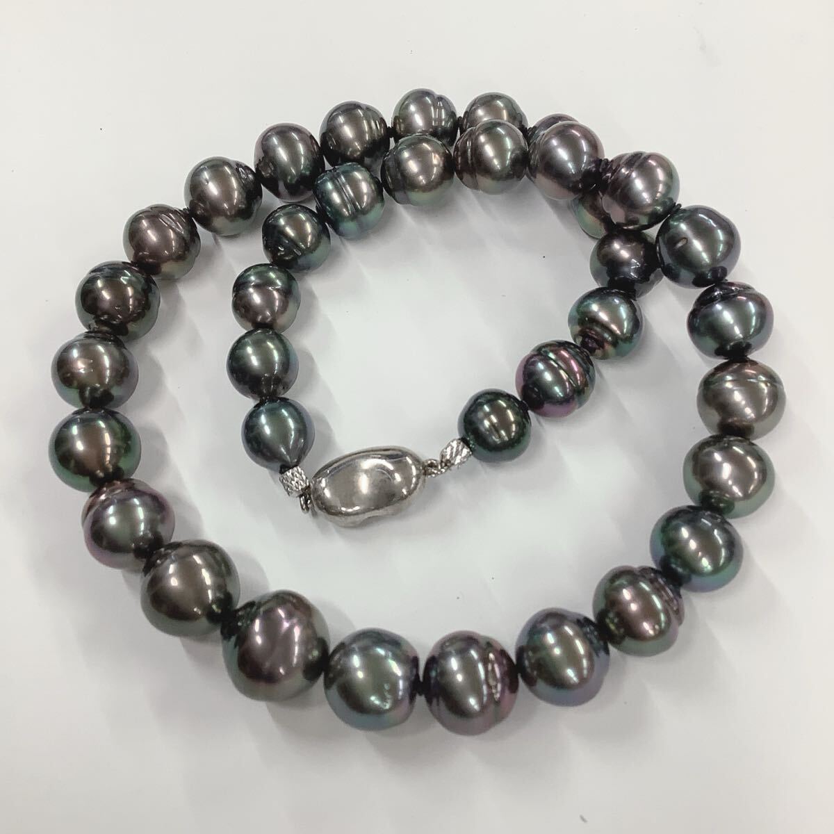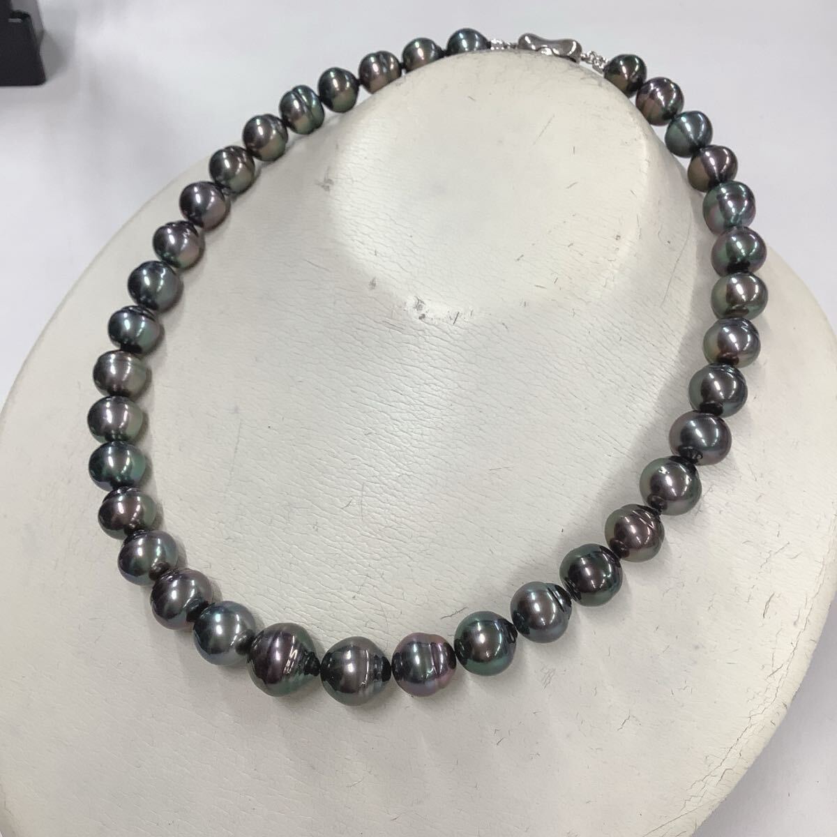 ●ユ2186H◎艷やかバロックパール 黒蝶真珠? ネックレス 約44センチ 留具SILVER・イヤリング台K14WG刻印あり◎