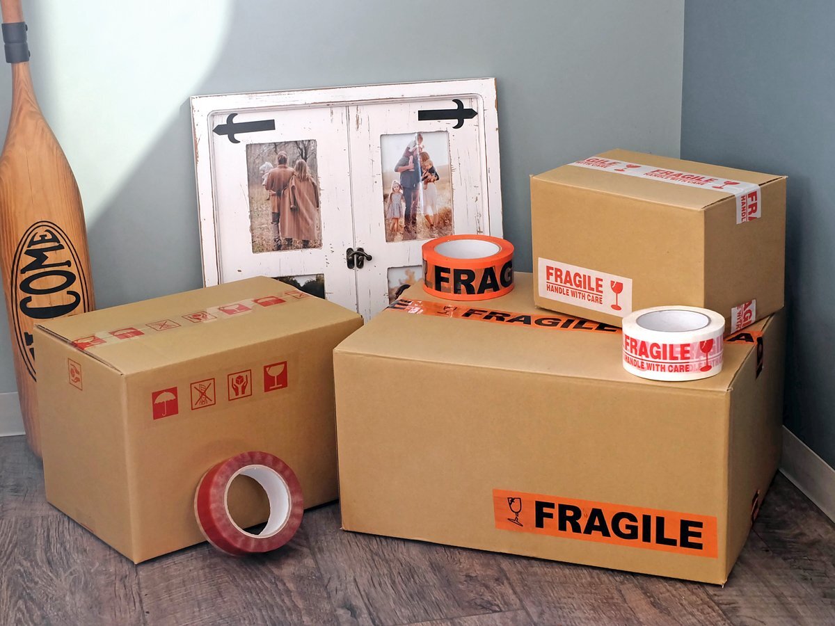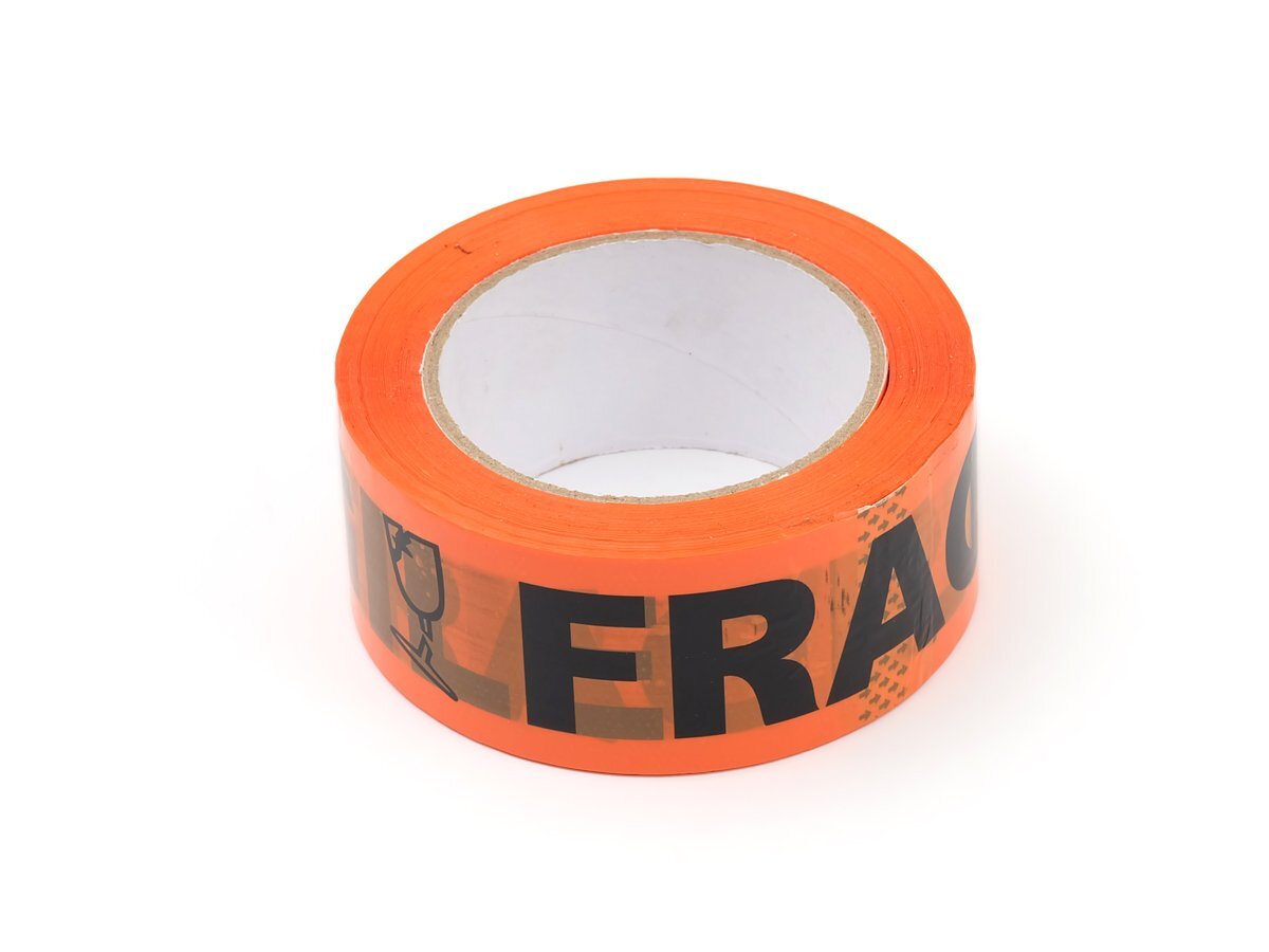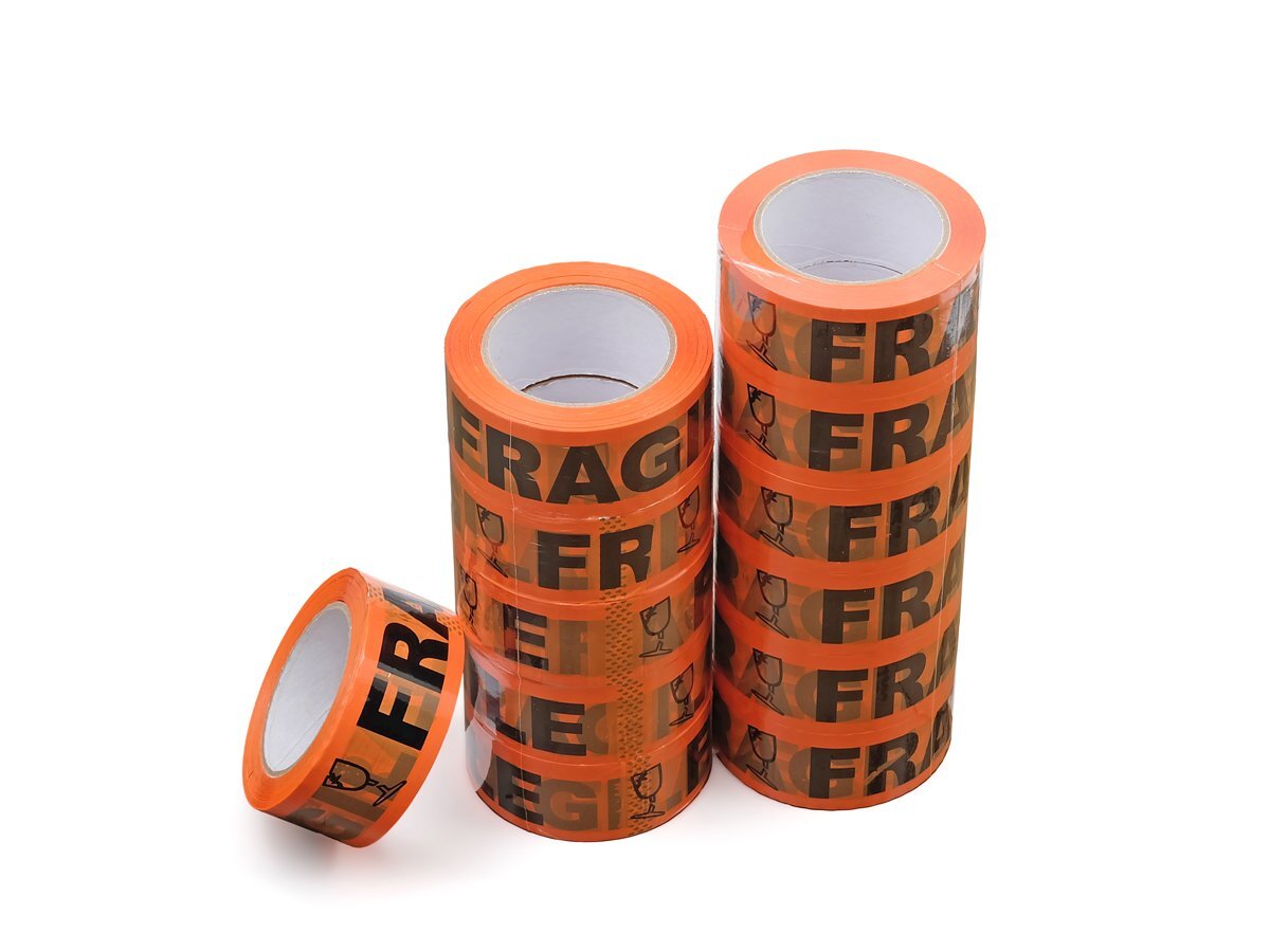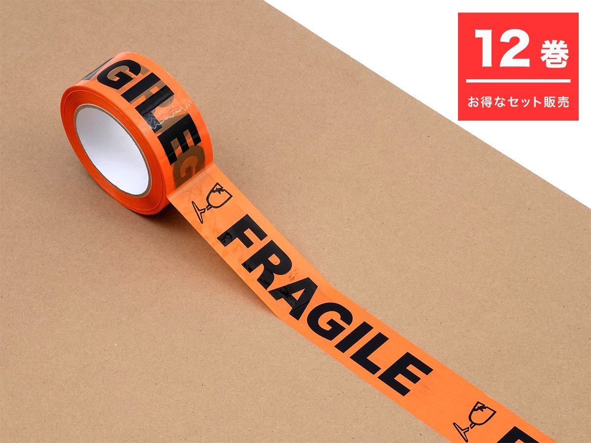 12巻セット 梱包用 OPPテープ 48mm×100m巻 FRAGILE ORANGE ケアマーク 荷物包装 ケアシール ラッピング ワレモノ注意 Caremark 事務用品
