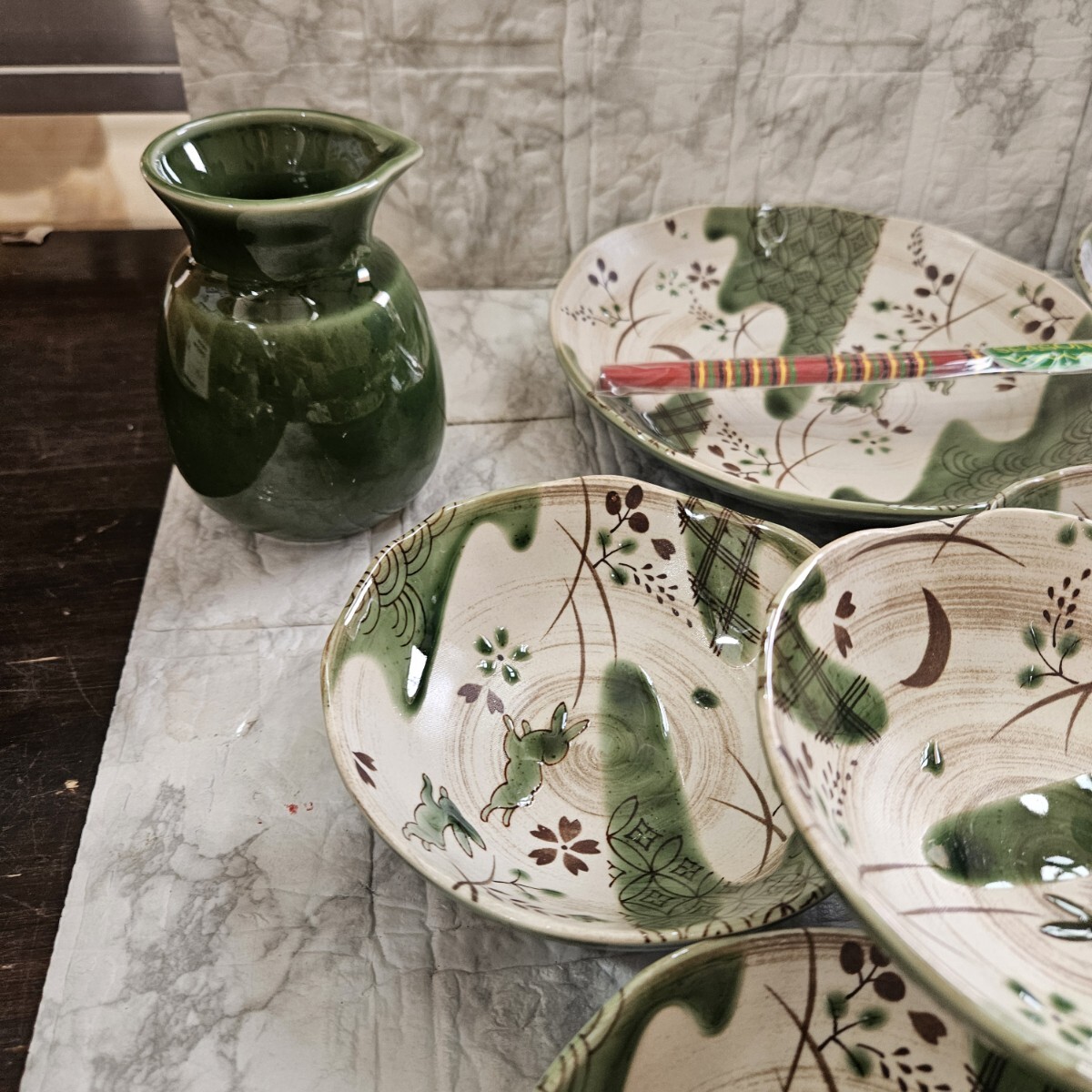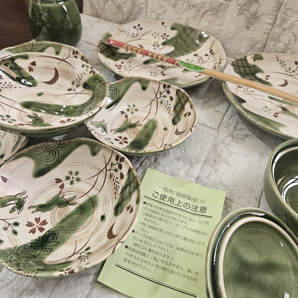 【未使用】天ぷら皿揃 ウサギ柄