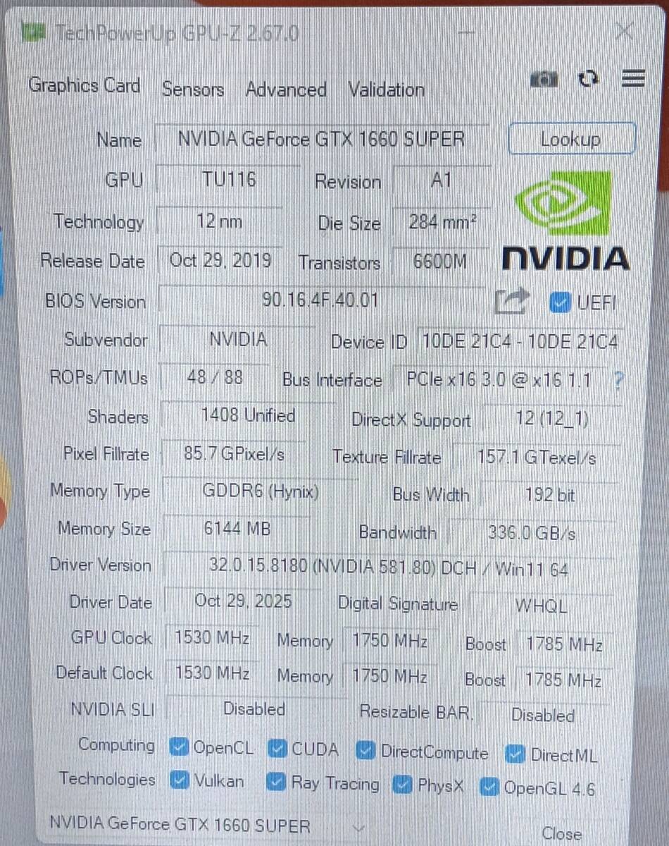 ・マザーボードに取り付けてWindowsを起動し、GPU-Zで確認しました。(HDMI/DVI/DP端子の確認済み)