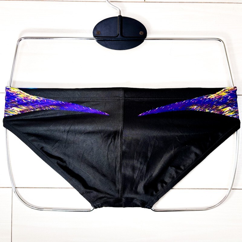 3アリーナ男子競泳水着L★ARN-5230★薄地★超光沢黒ブラックカラフルグラフィック柄★競パンVパンブーメラン